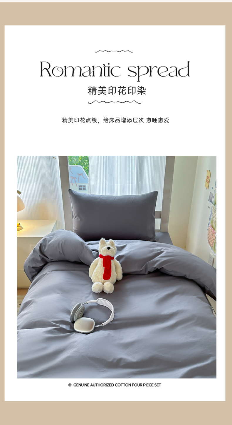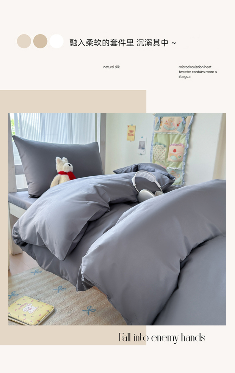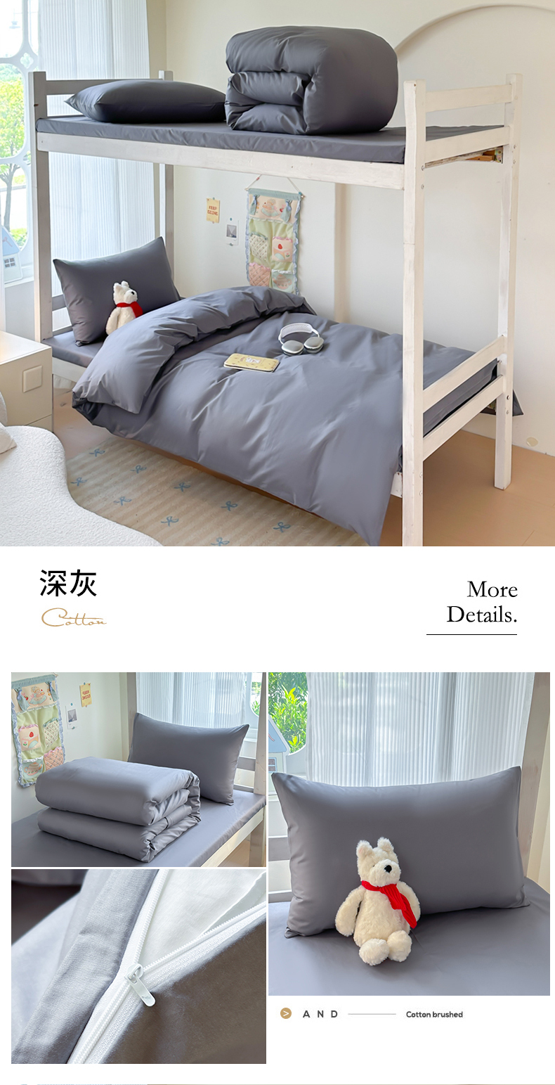 商品名称:简冠家纺 2025新款13372全棉纯色学生三件套 深灰