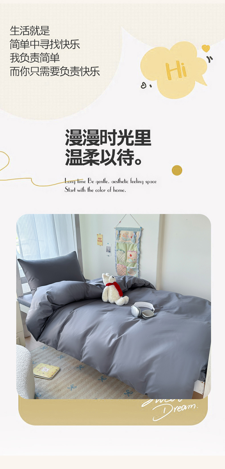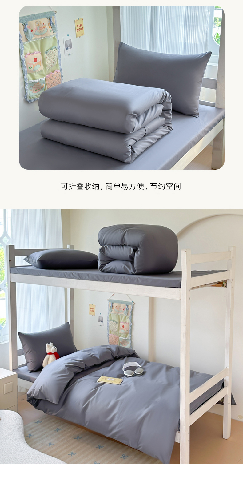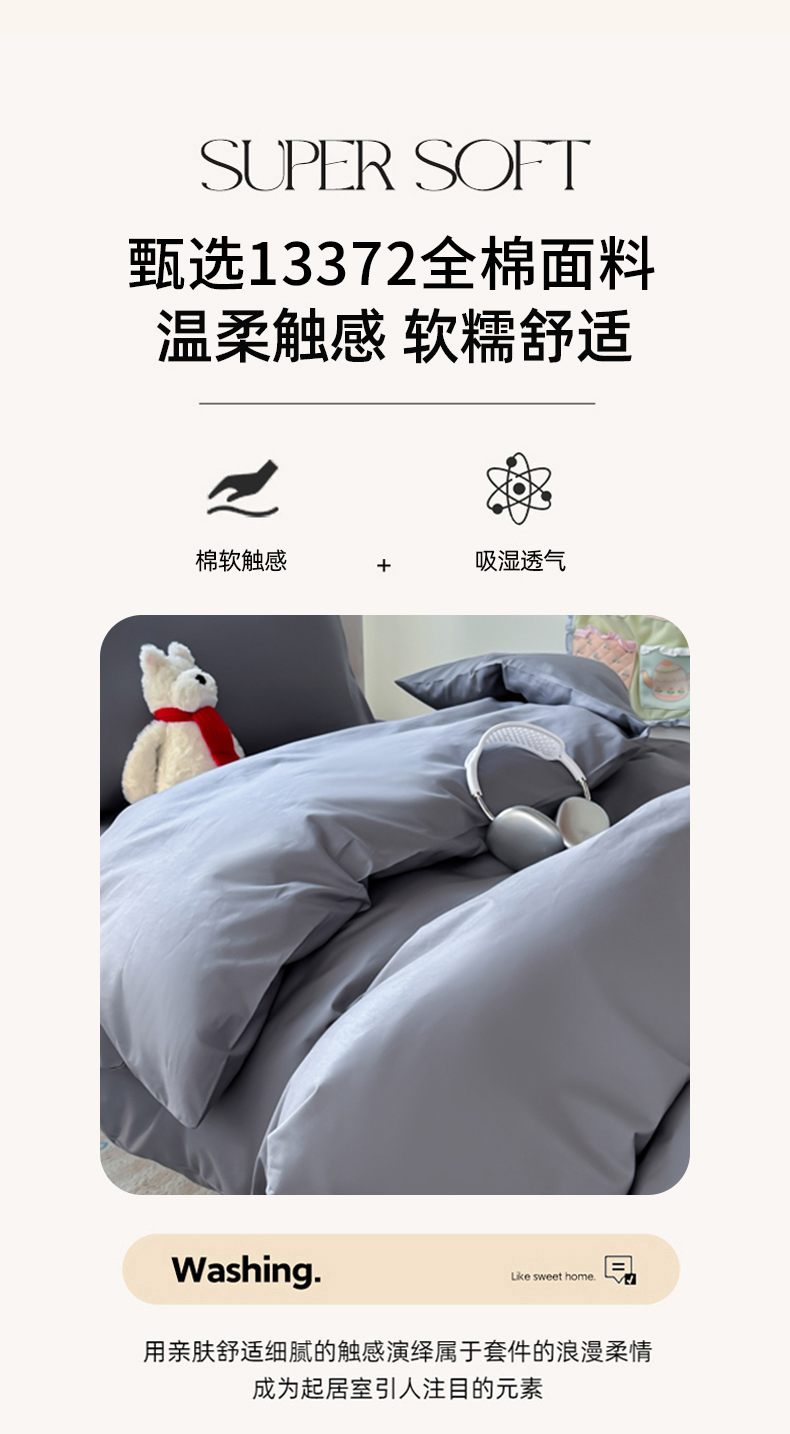 商品名称:简冠家纺 2025新款13372全棉纯色学生三件套 深灰