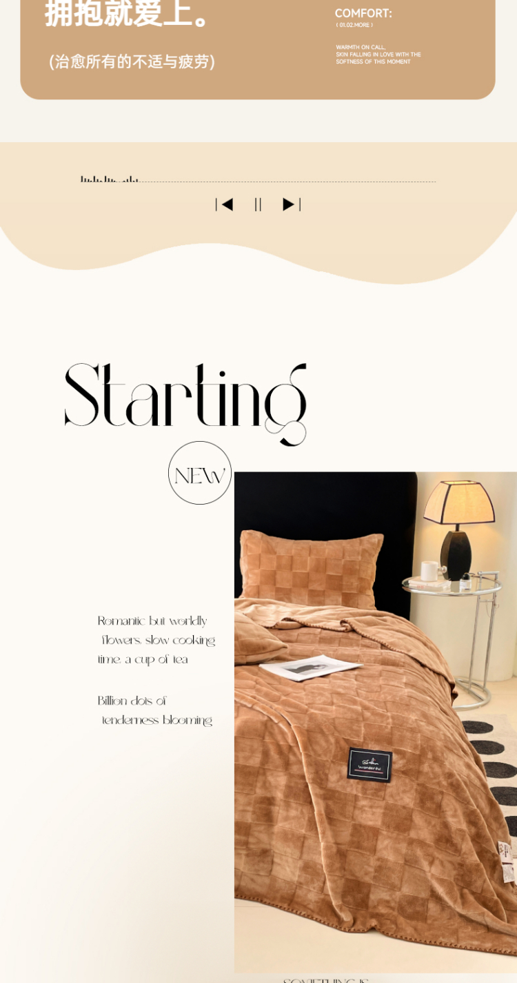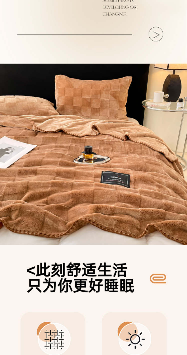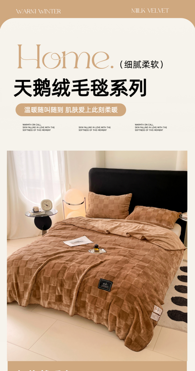 商品名称:楼兰公主 2025新款天鹅绒毛毯系列 深咖