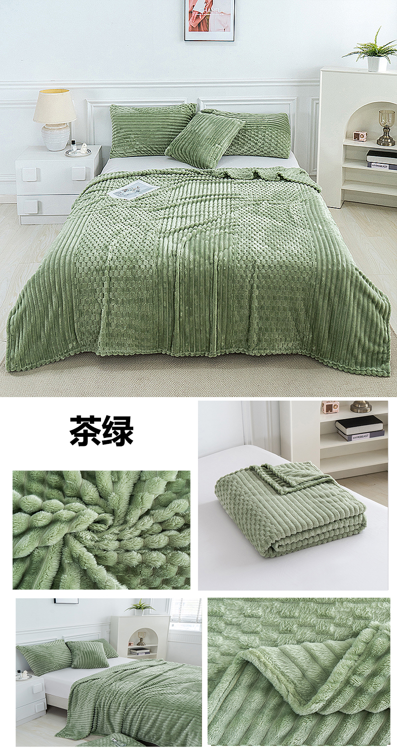 (总)楼兰公主 2025新款竹节绒毛毯,豆沙粉,卡其色,抹茶绿,奶油咖,深灰色,烟雾蓝,组合图仅供参考