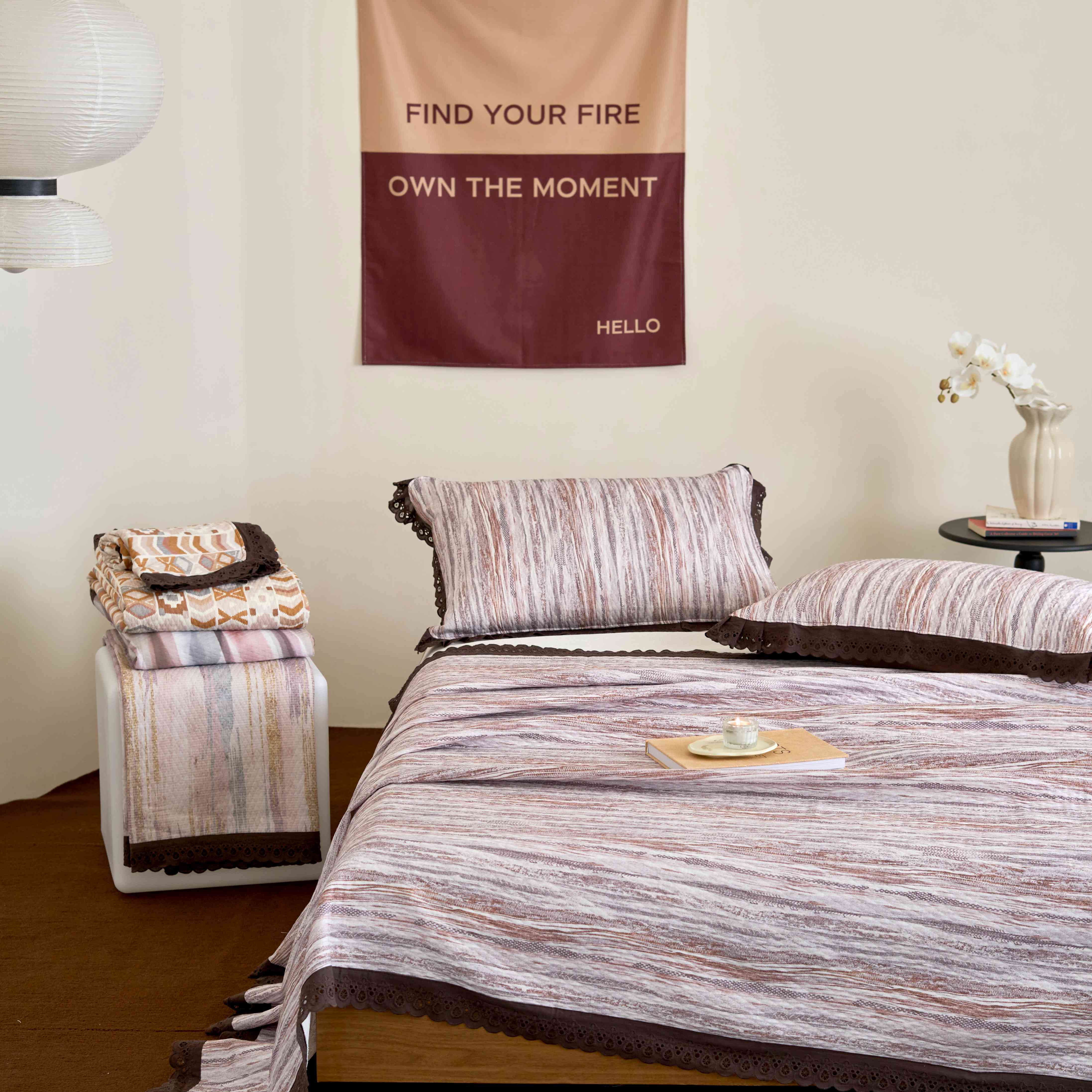 月夏 2025新款春夏全棉纯棉提花床盖三件套 星与海-粉