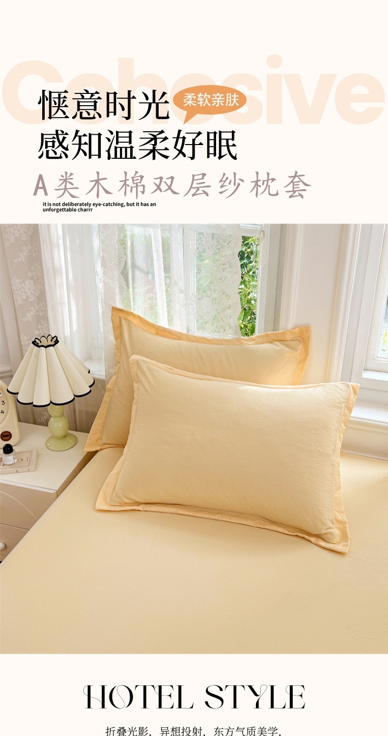 商品名称:梦舒羽 2025新款云感双层纱印花枕套宿舍单人枕芯套一对装枕头套 奶酪黄