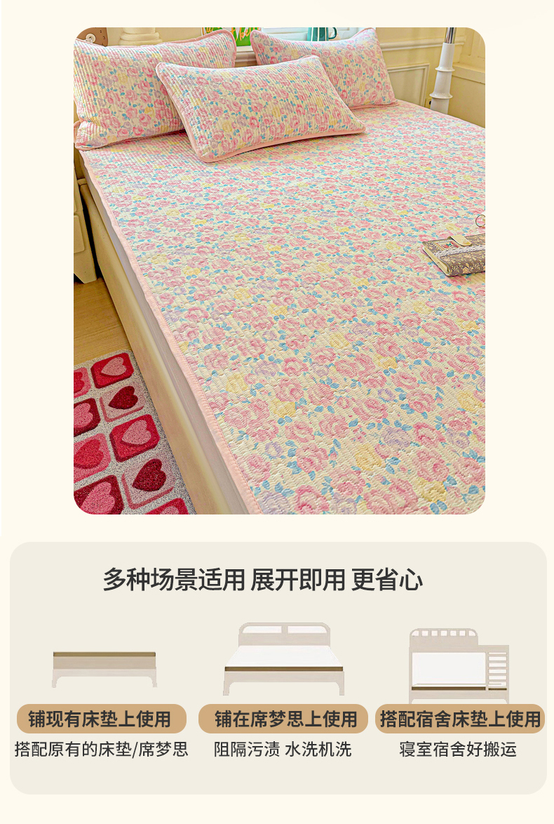 (总)恒尚居 2025新款云感床褥垫双层皱皱纱学生软床垫床护垫-四季款-系列一,春日繁花,欢乐兔,玫瑰印象,美丽心情,蔷薇,清新蓝,紫藤花,组合图仅供展示