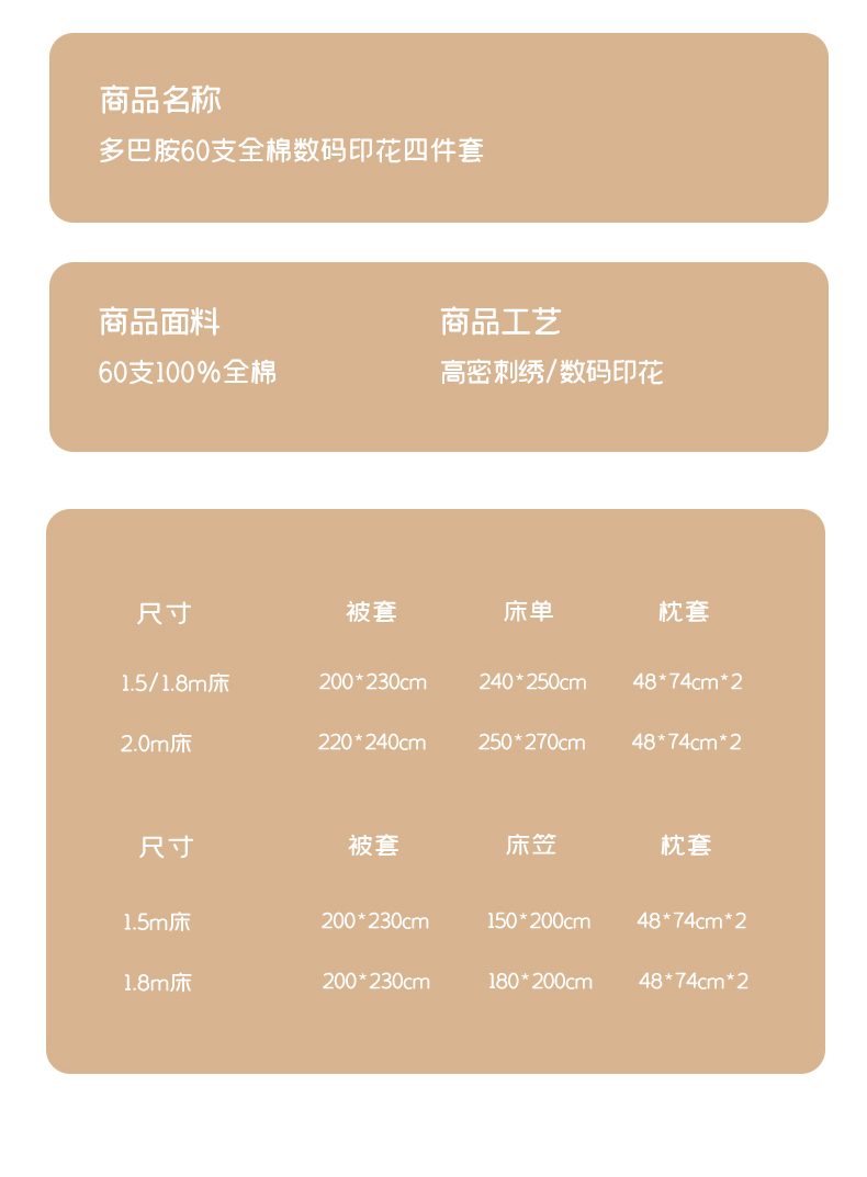 【床笠款】1.8四件套-被套200x230 | ¥255.00 |