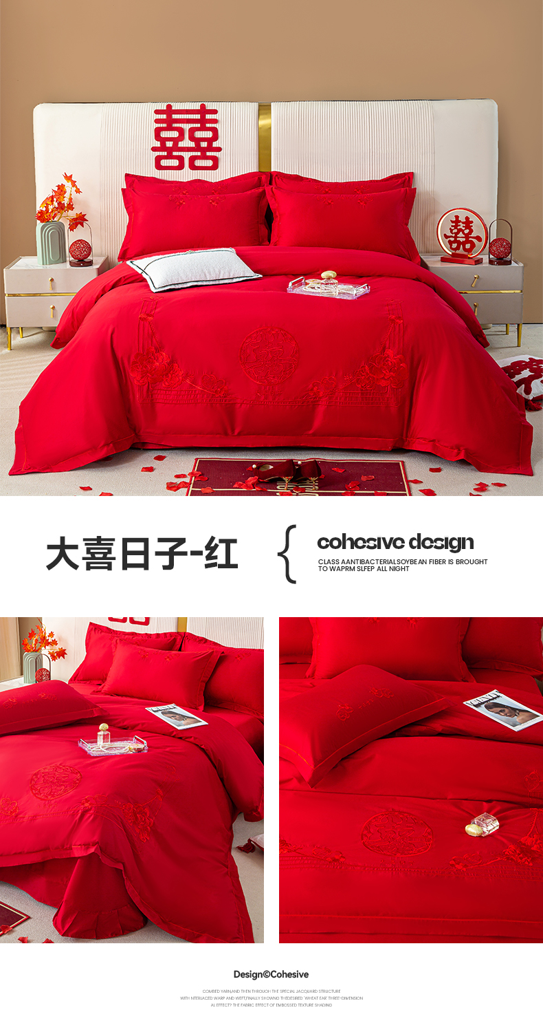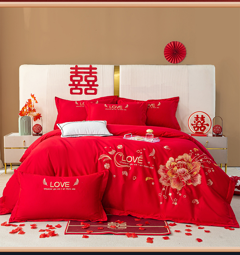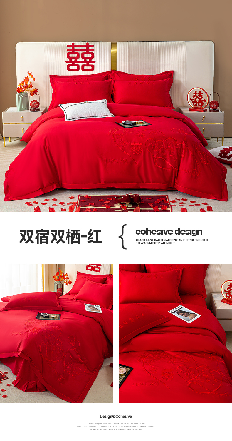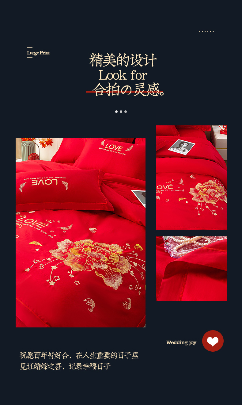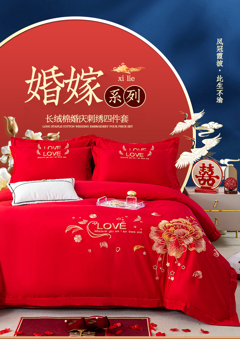 (总)银石 2024新款60新疆长绒棉大红婚庆绣花四件套,倾心一片,山河见证,心心相印,永结同心,浪漫时刻,吉祥如意,龙凤报喜