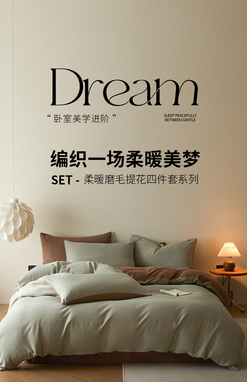 当前位置: 91家纺网 > 商品网购 > 床品套件 > 四件套 > 提花四件套 > ab家纺 2025新款全棉纯棉磨毛提花四件套 浅绿-迷雾棕