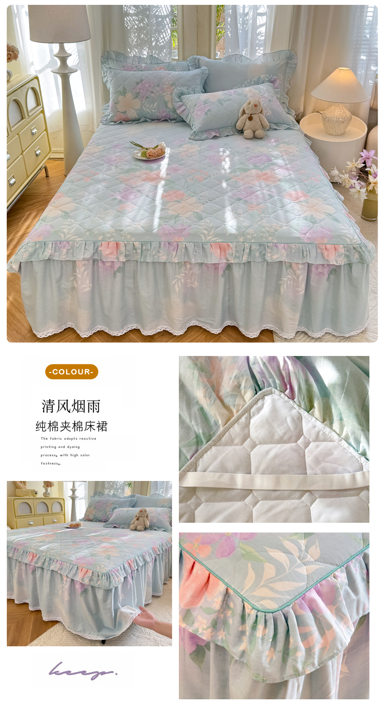商品名称:美达2025全棉蕾丝小花边夹棉单床裙 清风烟雨