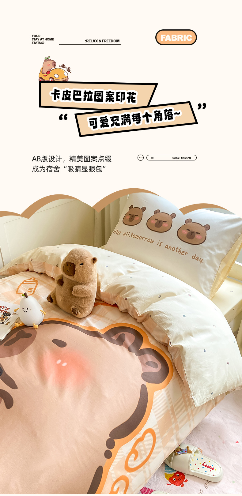 当前位置: 91家纺网 > 商品网购 > 床品套件 > 三件套 > 博雅2025新款卡皮巴拉全棉学生宿舍套件三件套多件套 可爱卡皮巴拉