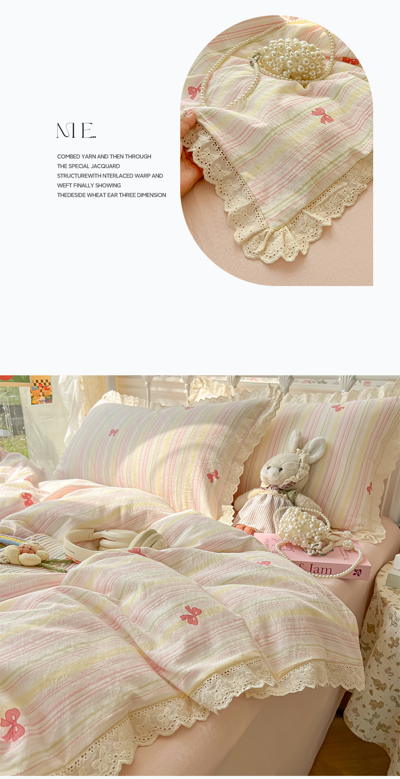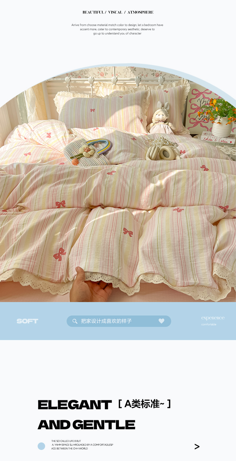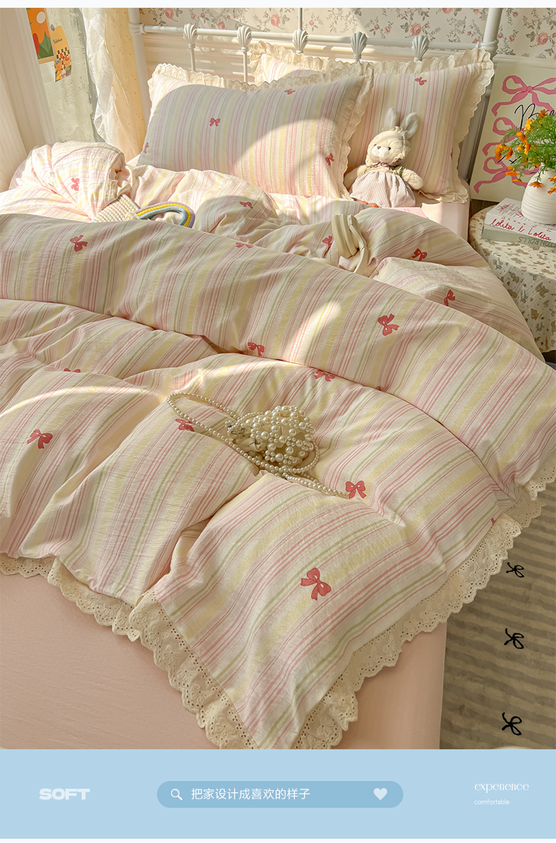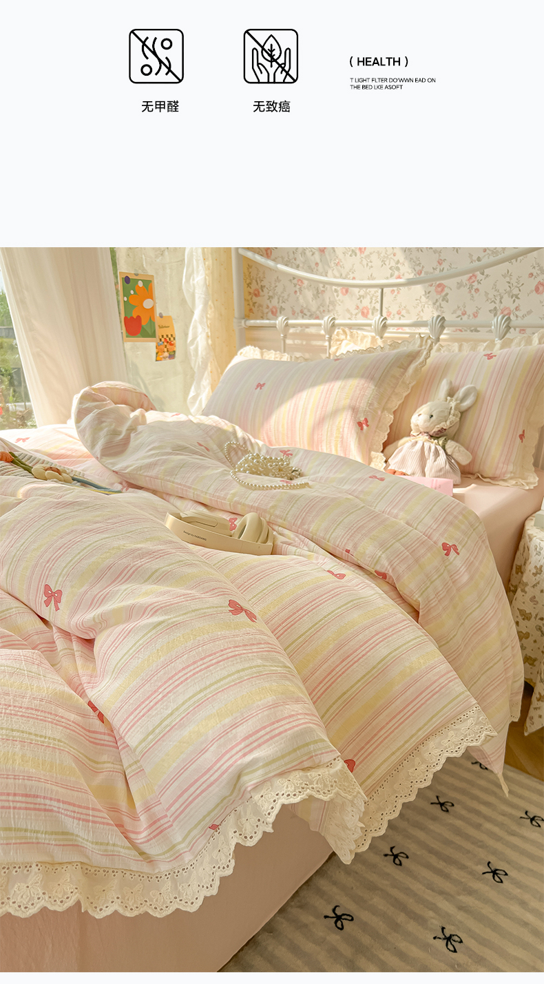 当前位置: 91家纺网 > 商品网购 > 床品套件 > 四件套 > 其它四件套 > 韩巢家纺 2025新款蝴蝶花边直播热销款四件套开学季韩系学生宿舍床上三件套-(提供卖家秀) 遇见彩虹【蝴蝶花边款】