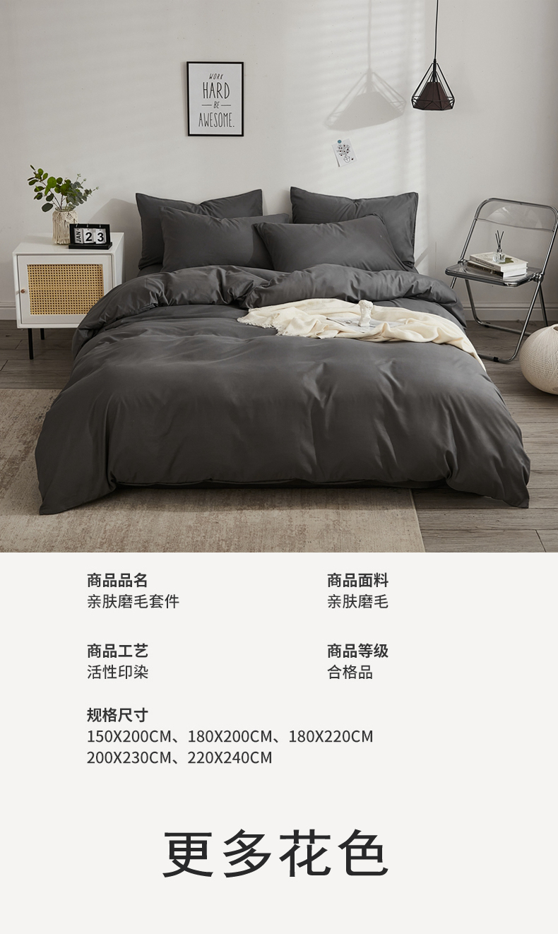 商品名称:啊雅家居 2025新款ins简约纯色亲肤磨毛单被套可订制logo-单被套被套单件单品被套 深灰