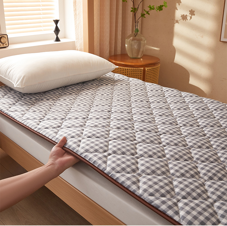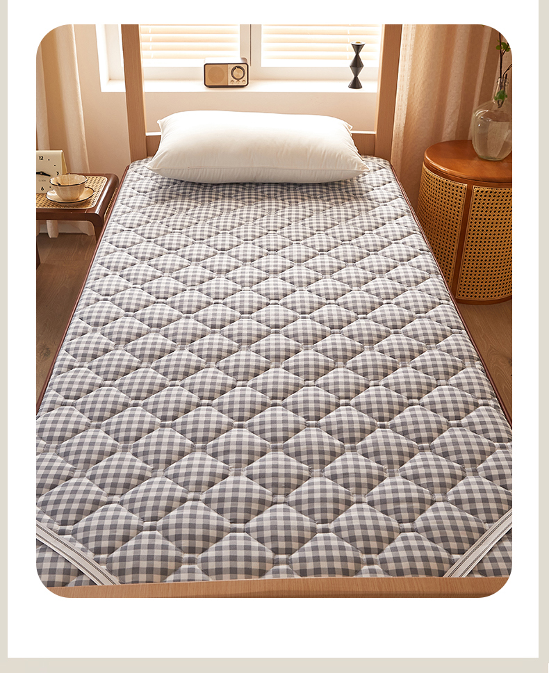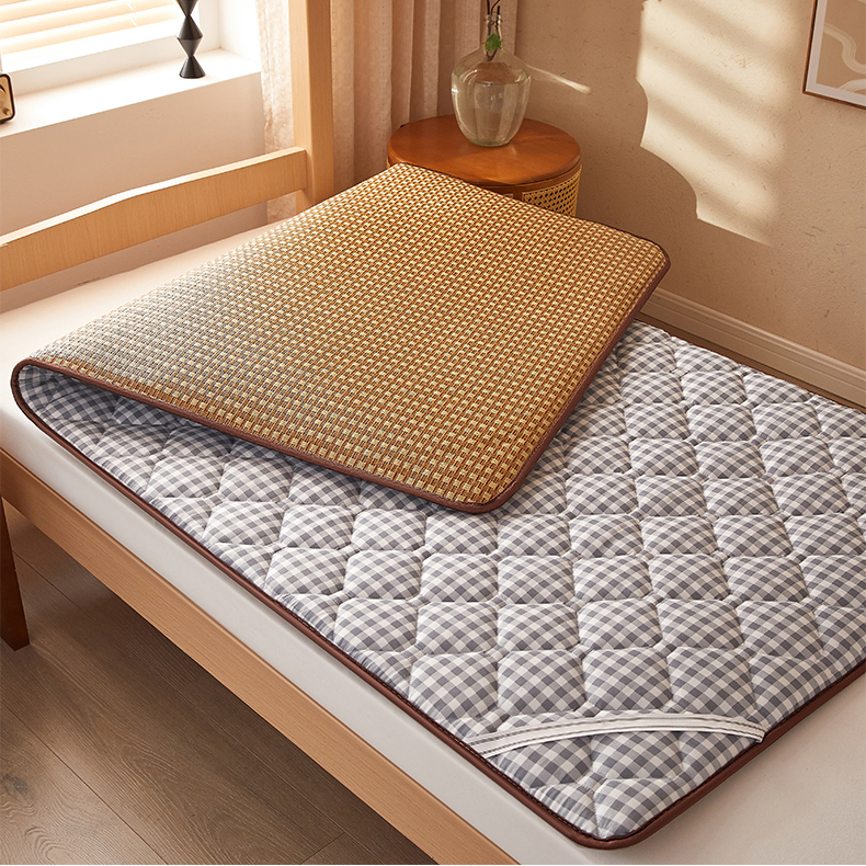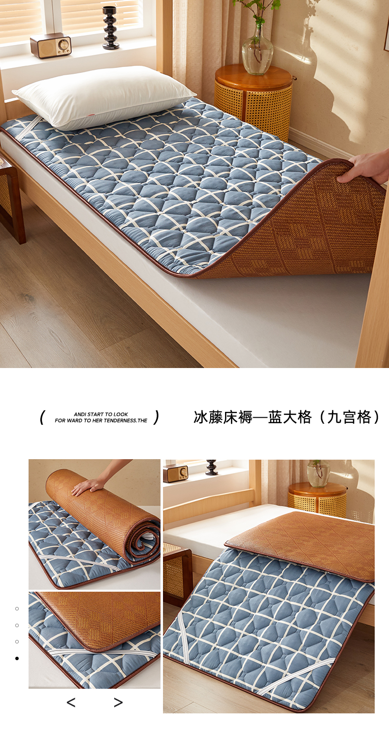 • 91家纺网 家纺一手货源 找家纺 花言狐语 2025新款双面可用冰藤夹棉床褥系列-小床款 冰藤床褥-蓝大格(饼干花)