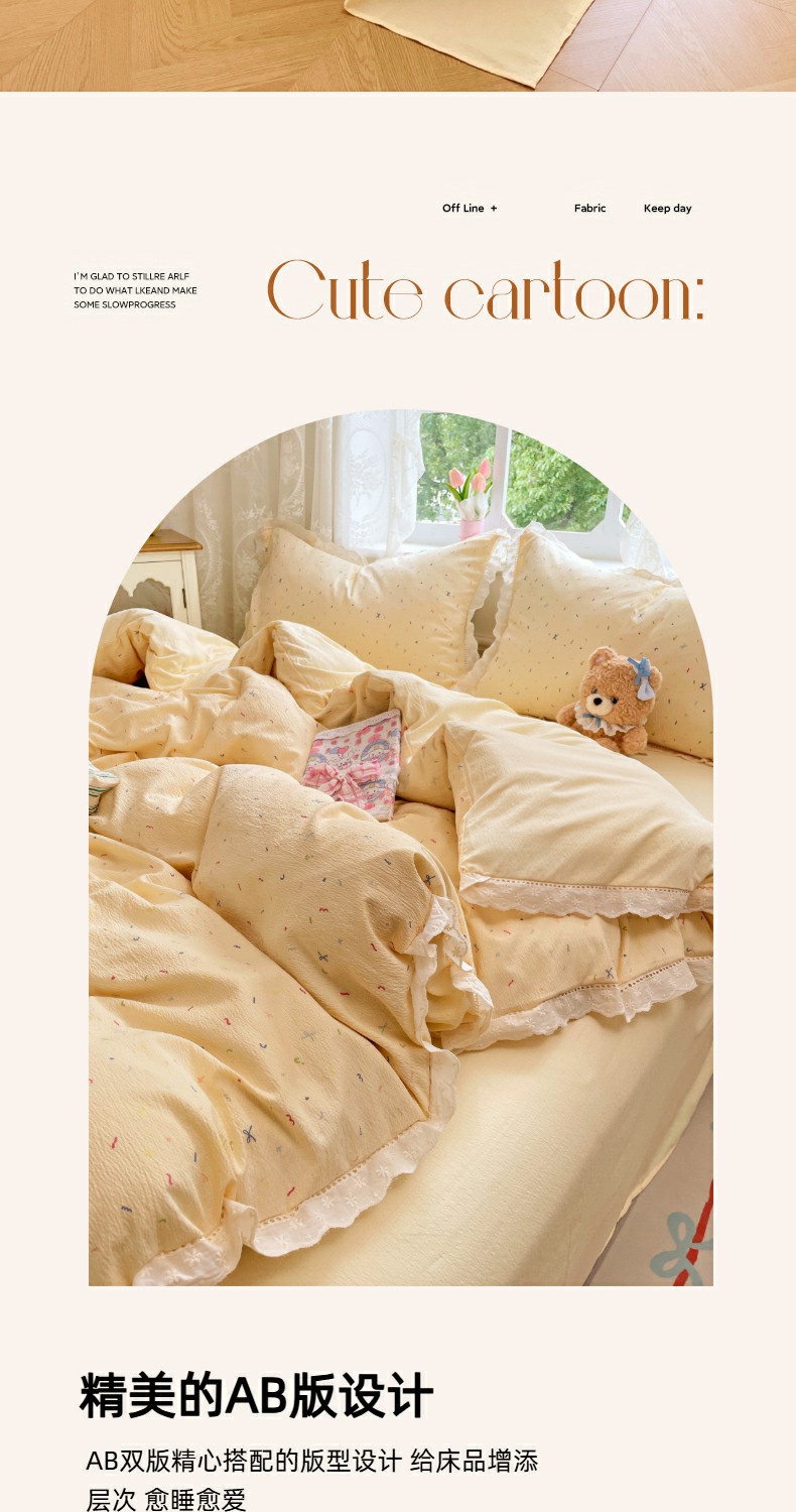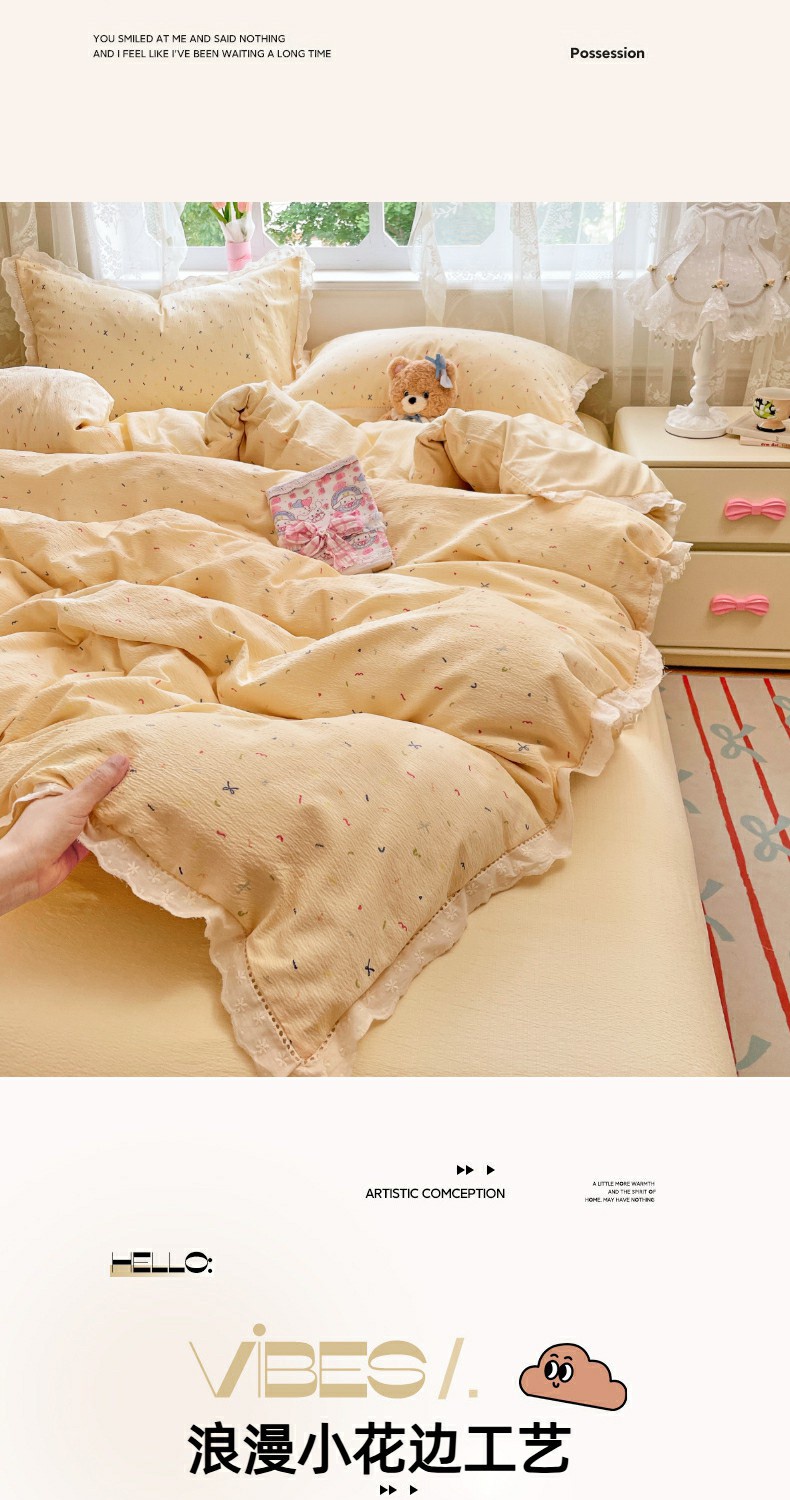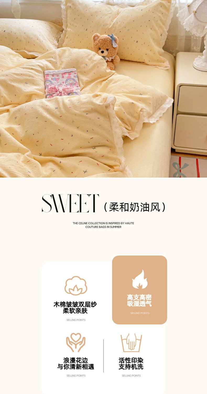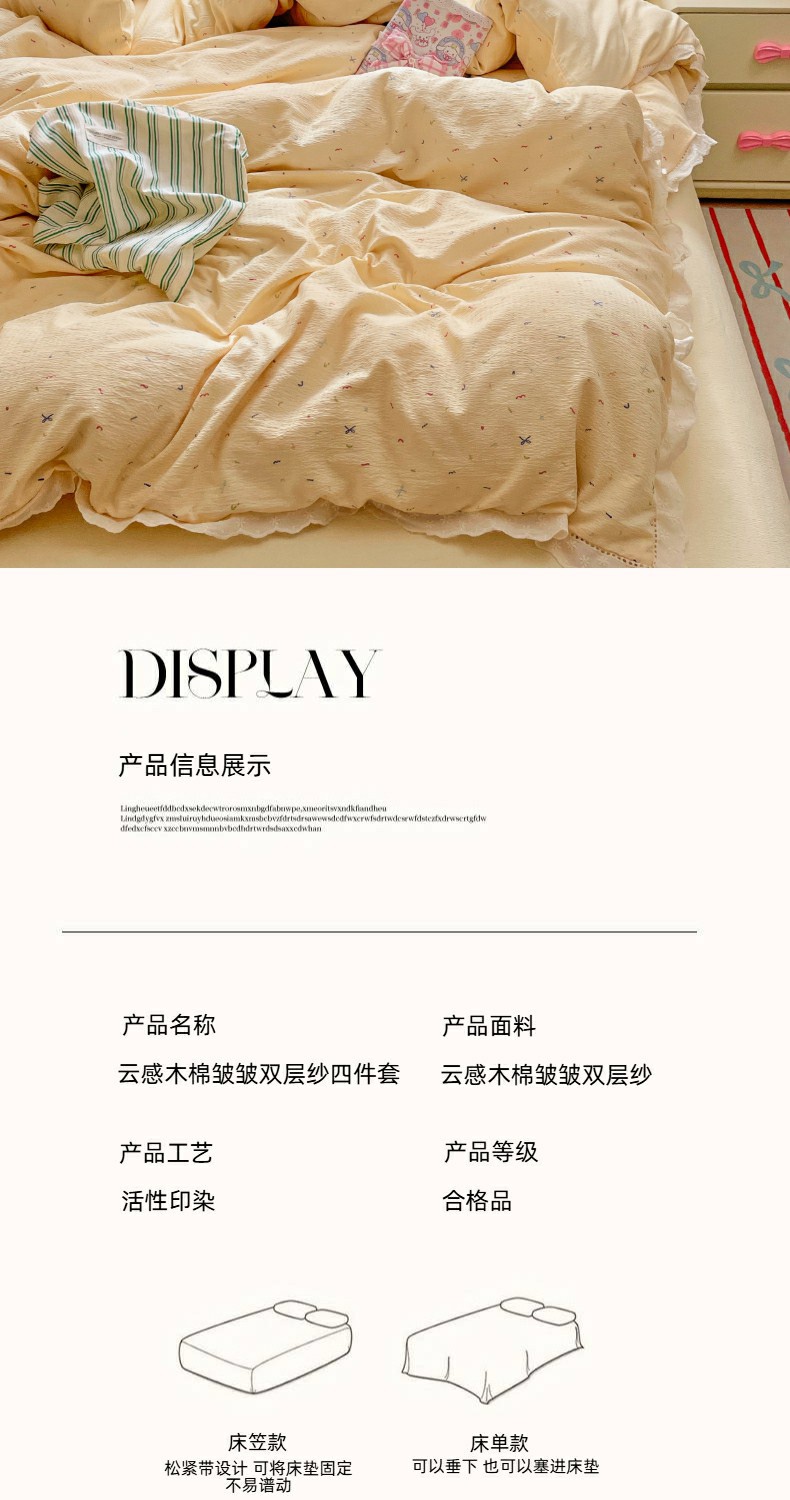 (总)优尚佳生活馆 2025新款云感木棉皱皱双层纱全棉镂空花边四件套(提供买家秀)
