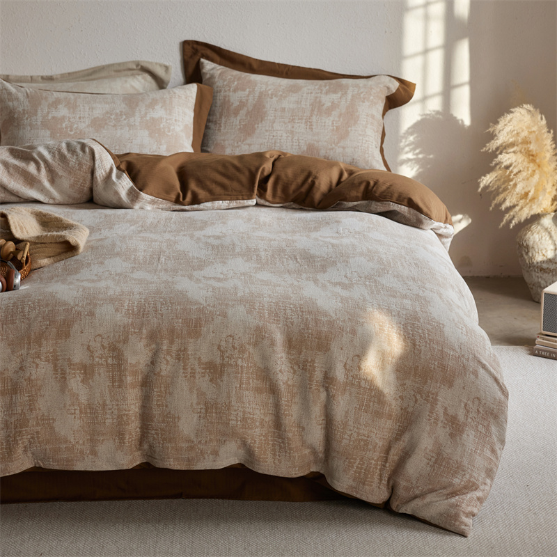 (总)梦享生活家居 2025新款双层纱提花四件套-砚秋系列,砚秋粉,砚秋灰,砚秋咖,砚秋焦糖