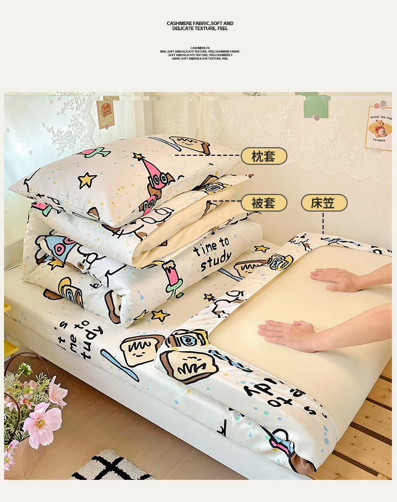 花伞家居 2025新款学生床加厚磨毛印花单品单床笠单床单 学习时间