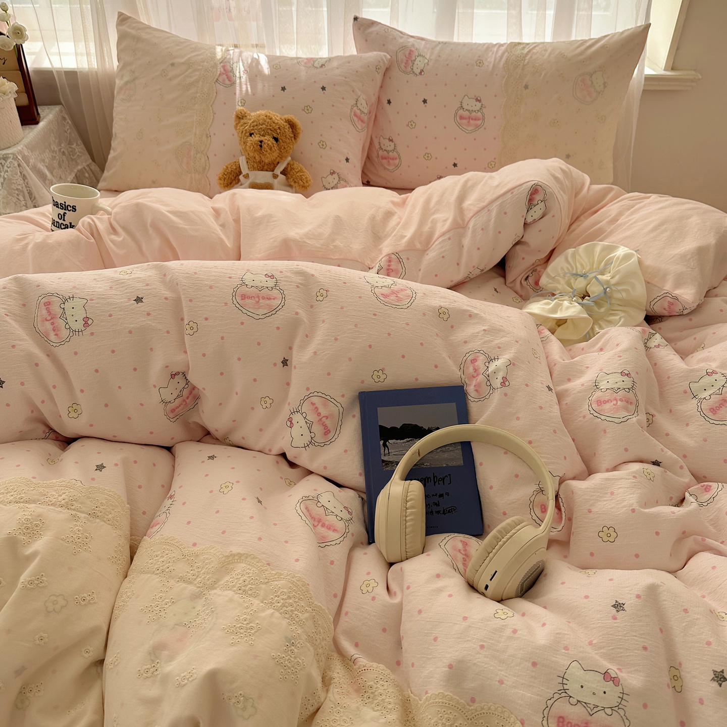 当前位置: 91家纺网 > 商品网购 > 床品套件 > 四件套 > 其它四件套 > 顾里家纺 2025新款蕾丝花边卡哇伊云感皱皱纱四件套套件 小蝴蝶结