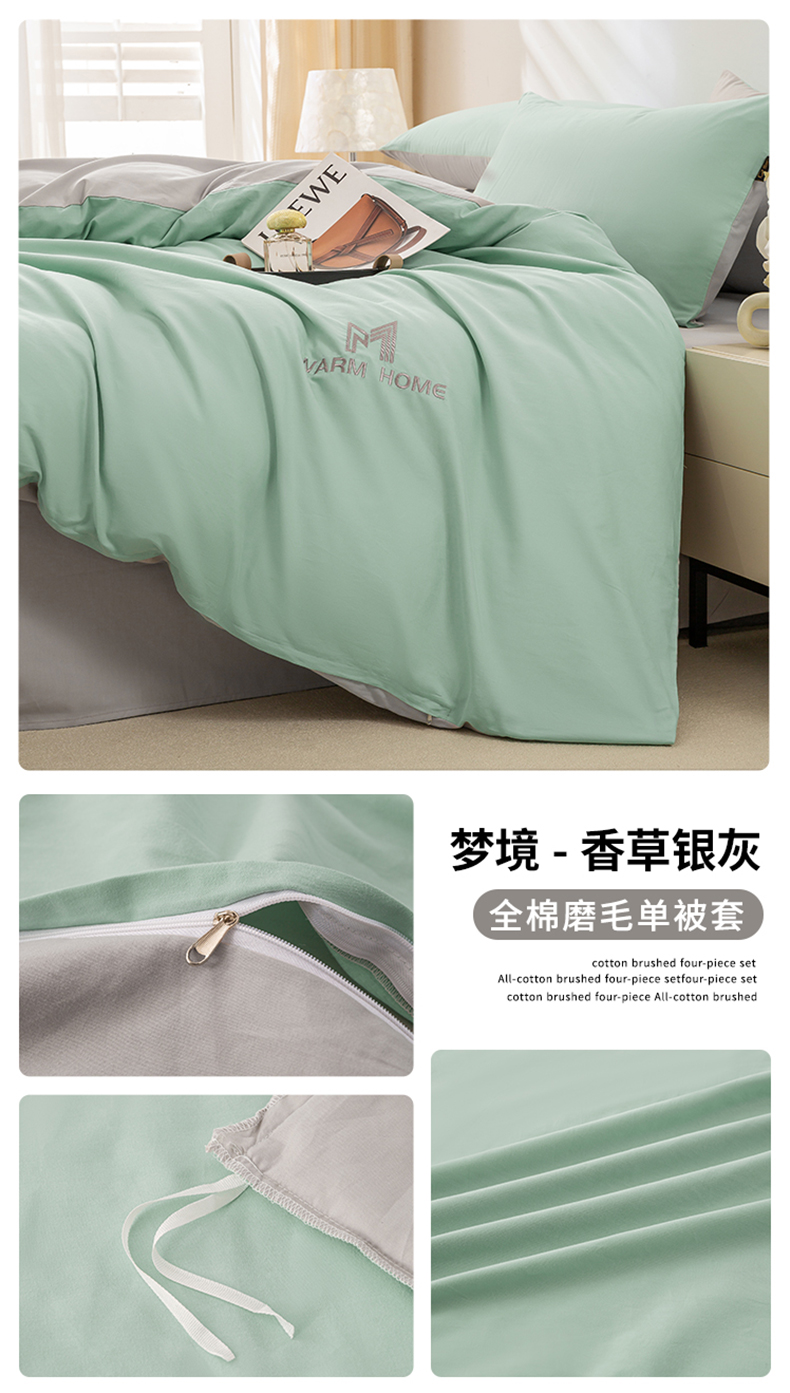 商品名称:沃尔居 2025新款全棉磨毛加厚长绒棉单被套纯色学生宿舍贡缎100%纯棉被套 梦境--香草银灰