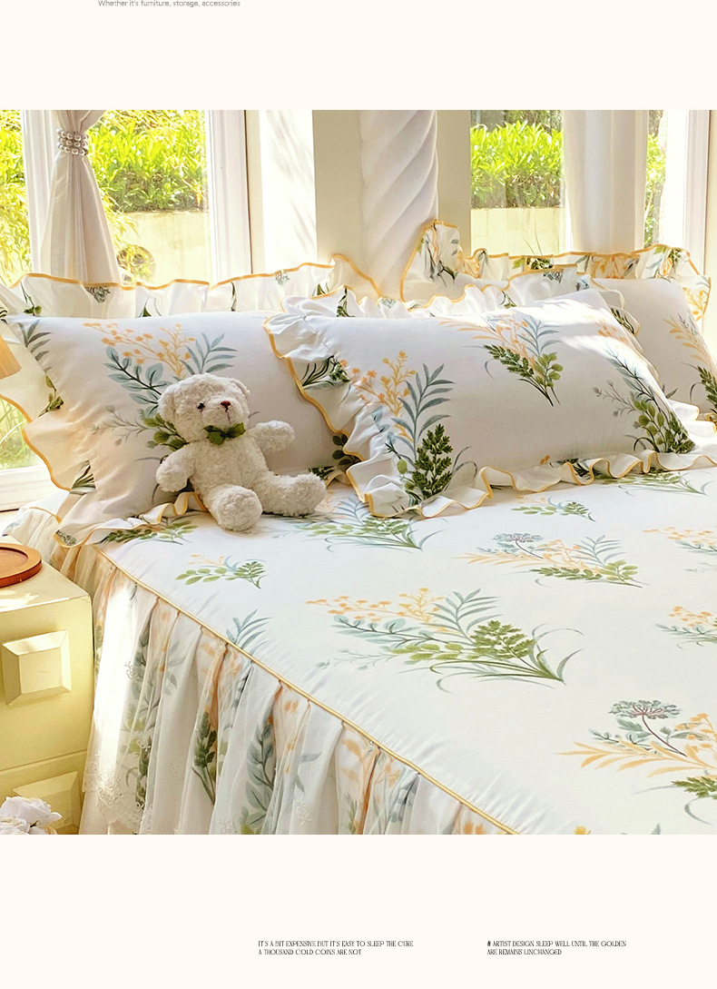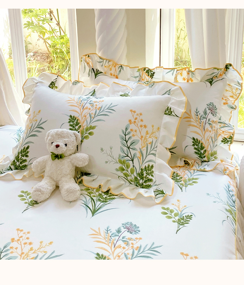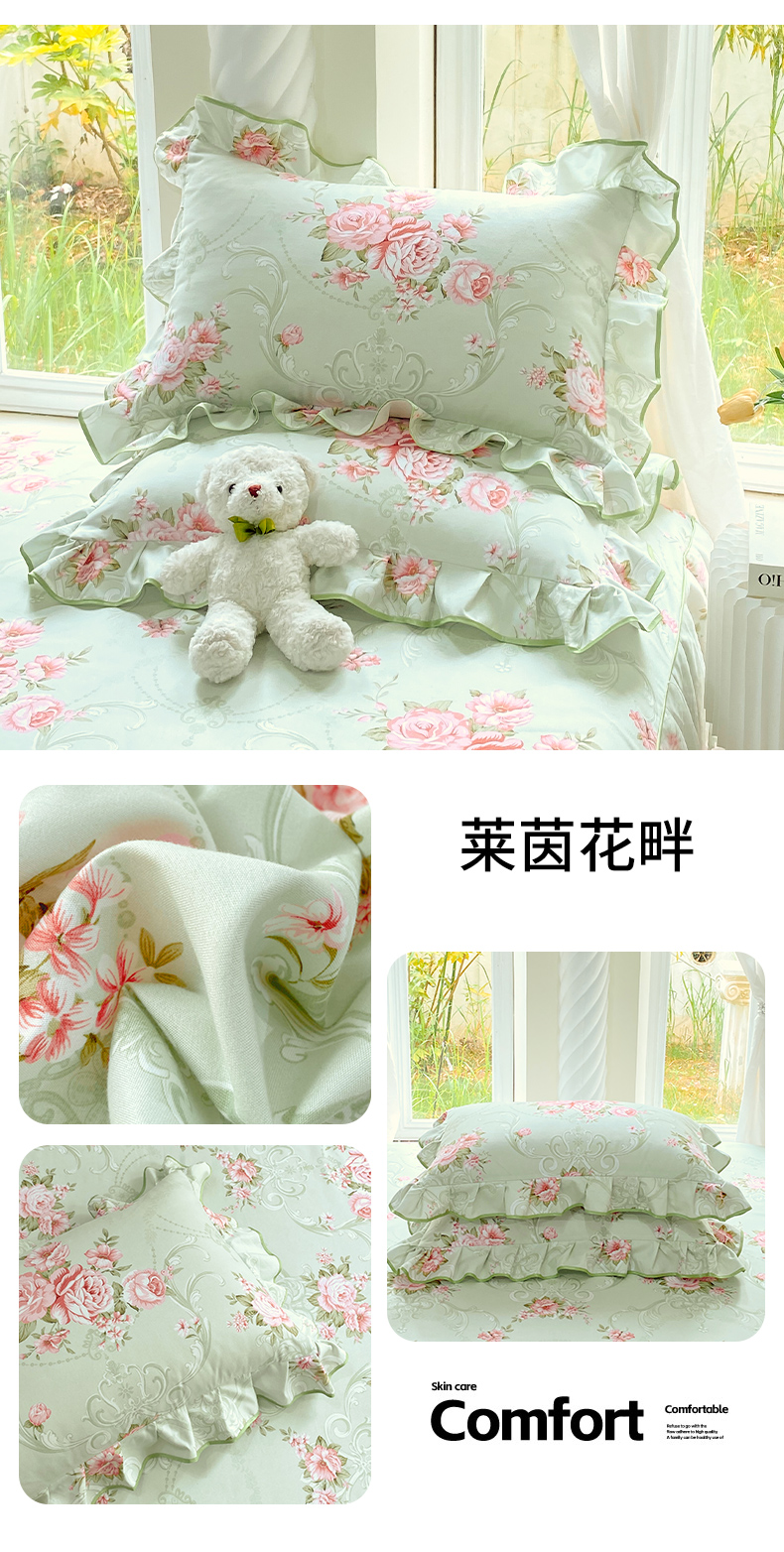 商品名称:雨彤家纺 2025新款韩式公主风亲肤斜纹枕套 公主风-斐叶花影