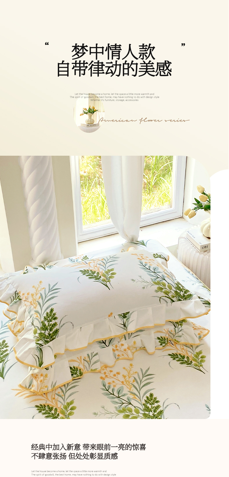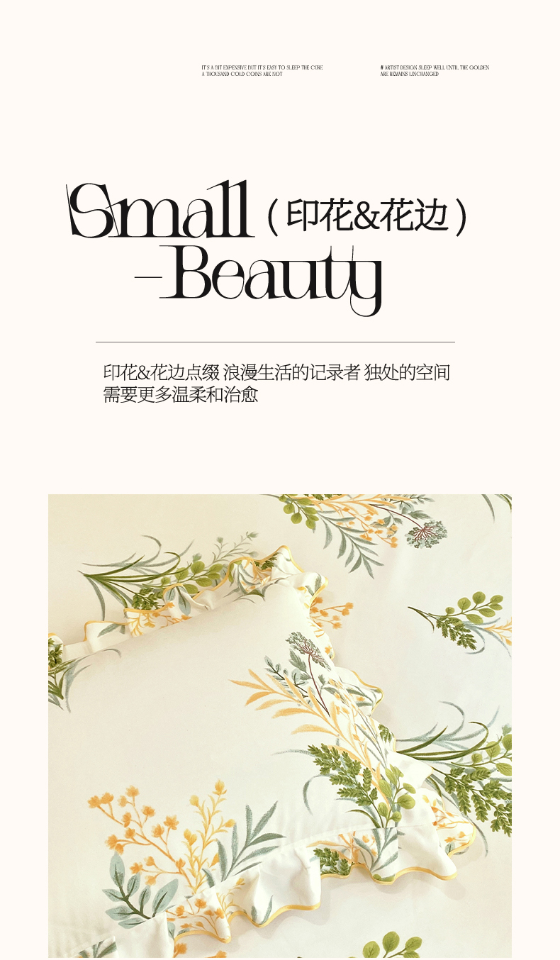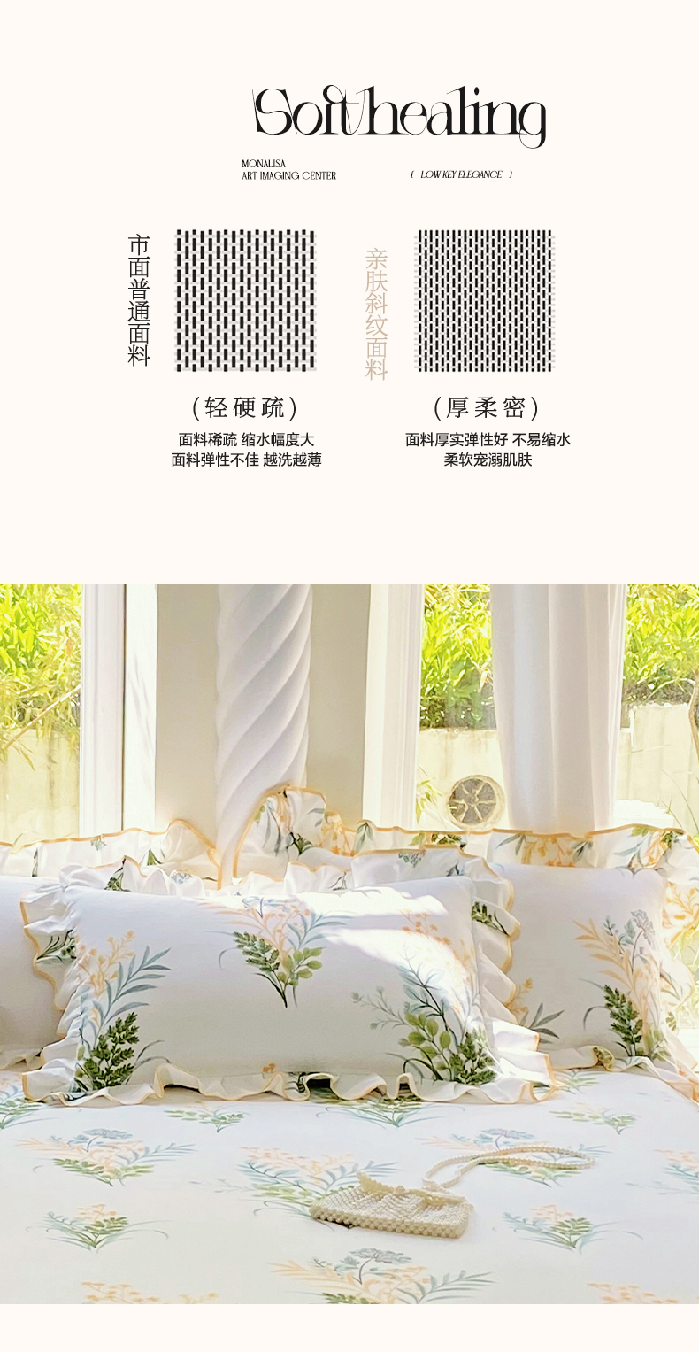 商品名称:雨彤家纺 2025新款韩式公主风亲肤斜纹枕套 公主风-斐叶花影