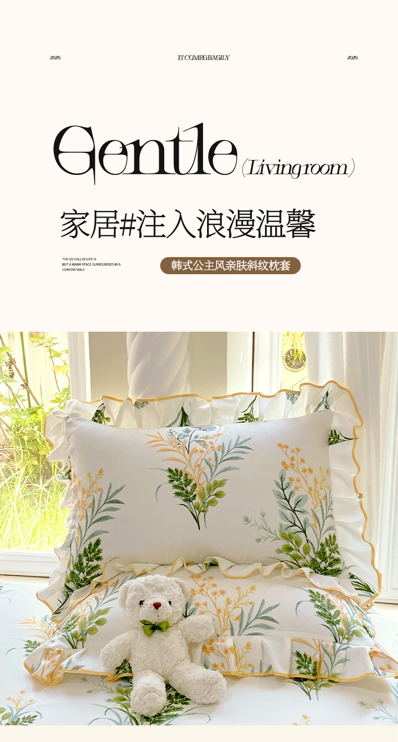 雨彤家纺 2025新款韩式公主风亲肤斜纹枕套 公主风-斐叶花影