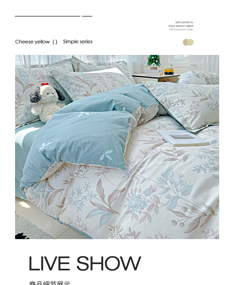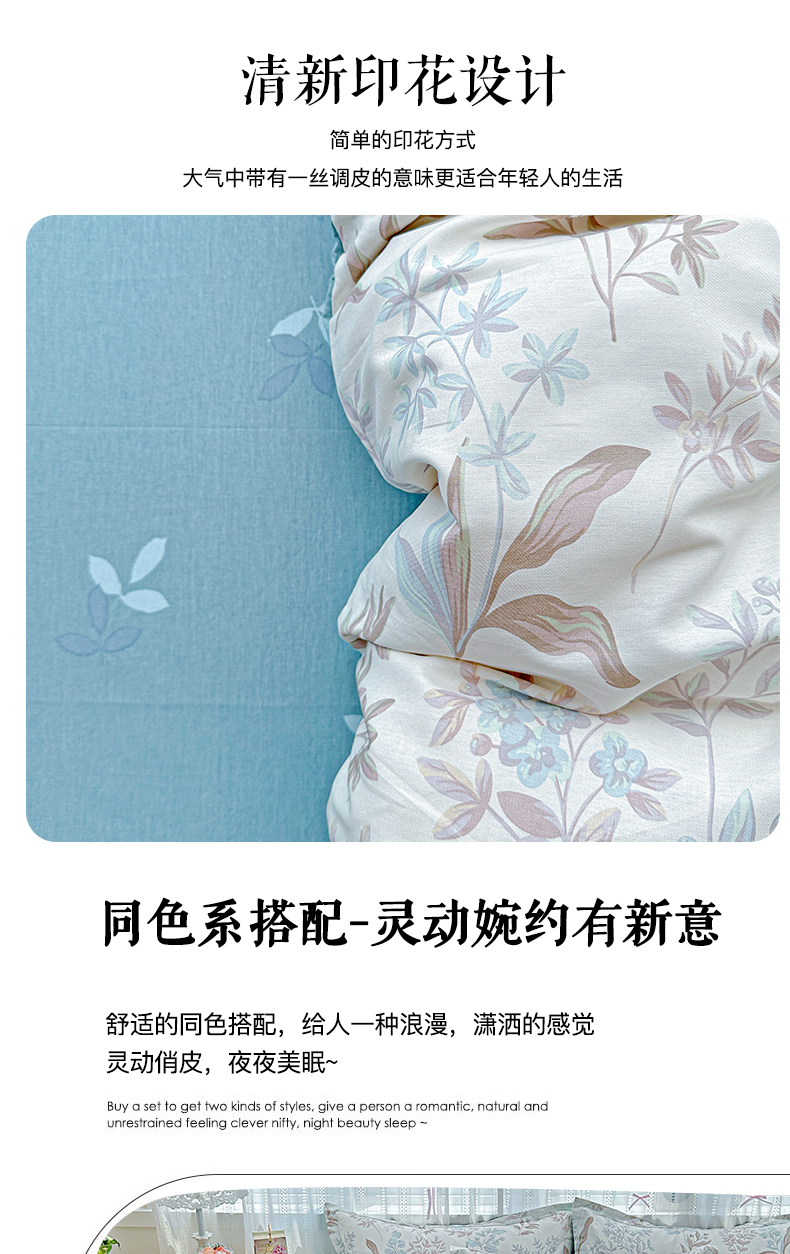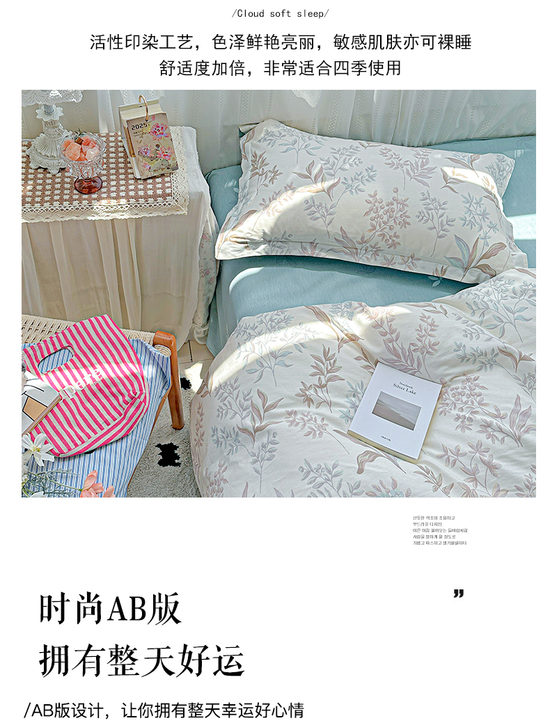当前位置: 91家纺网 > 商品网购 > 床品套件 > 四件套 > 全棉普通四件套 > 恩泽家纺 2025新款全棉纯棉12868喷气印花系列四件套-第二批 寻叶