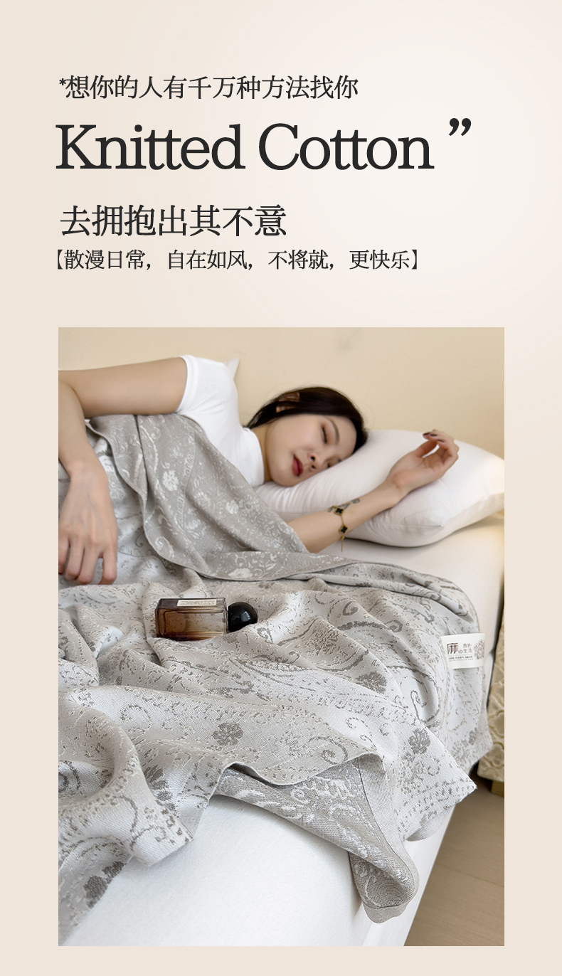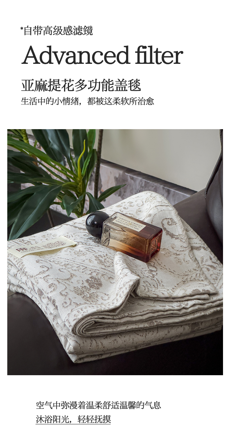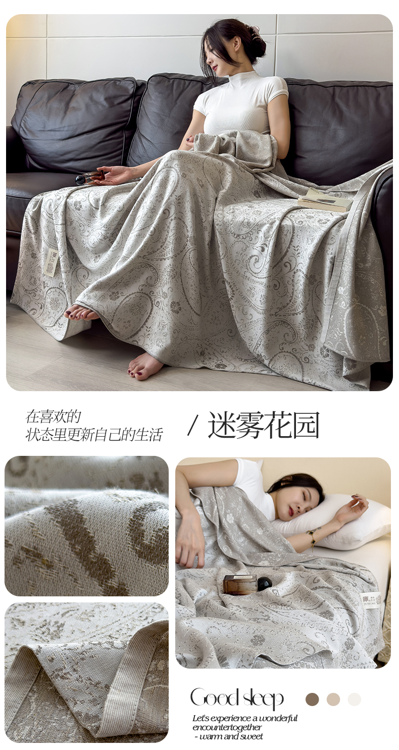 商品名称:米菲 2025新款A类亚麻提花多功能盖毯毯子毛毯 迷雾花园