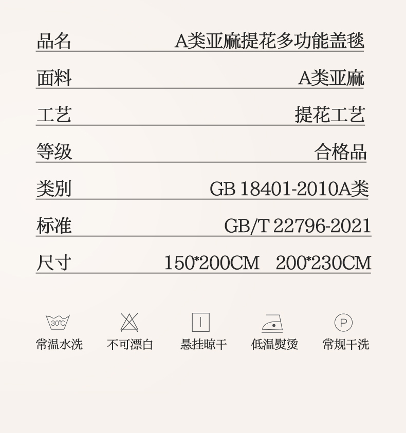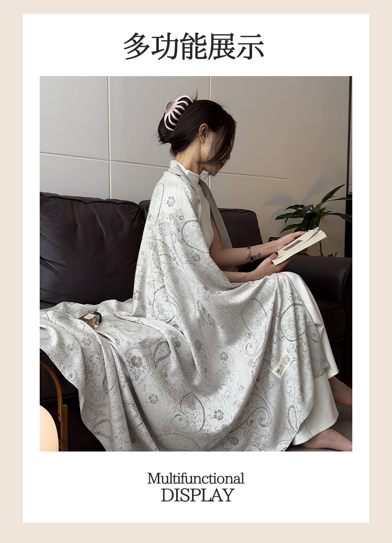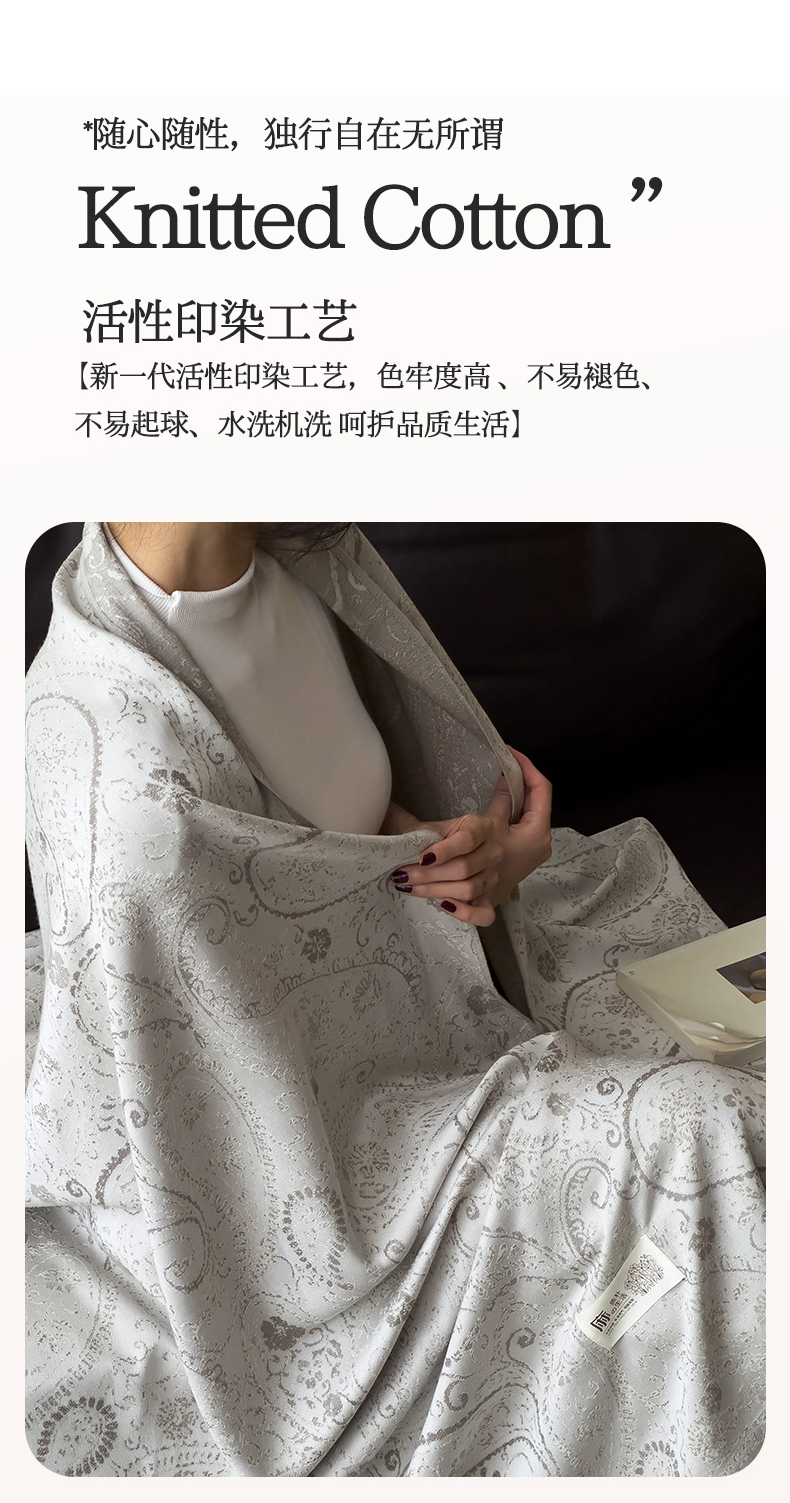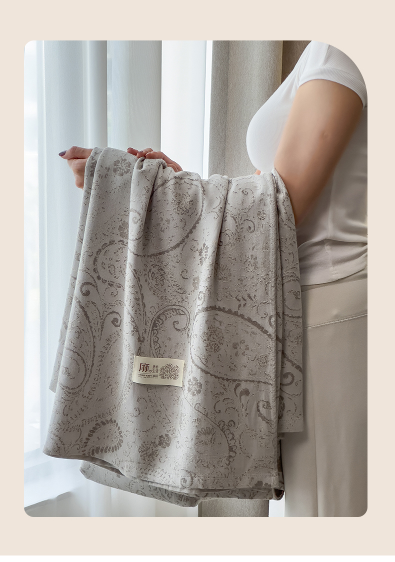 商品名称:米菲 2025新款A类亚麻提花多功能盖毯毯子毛毯 迷雾花园