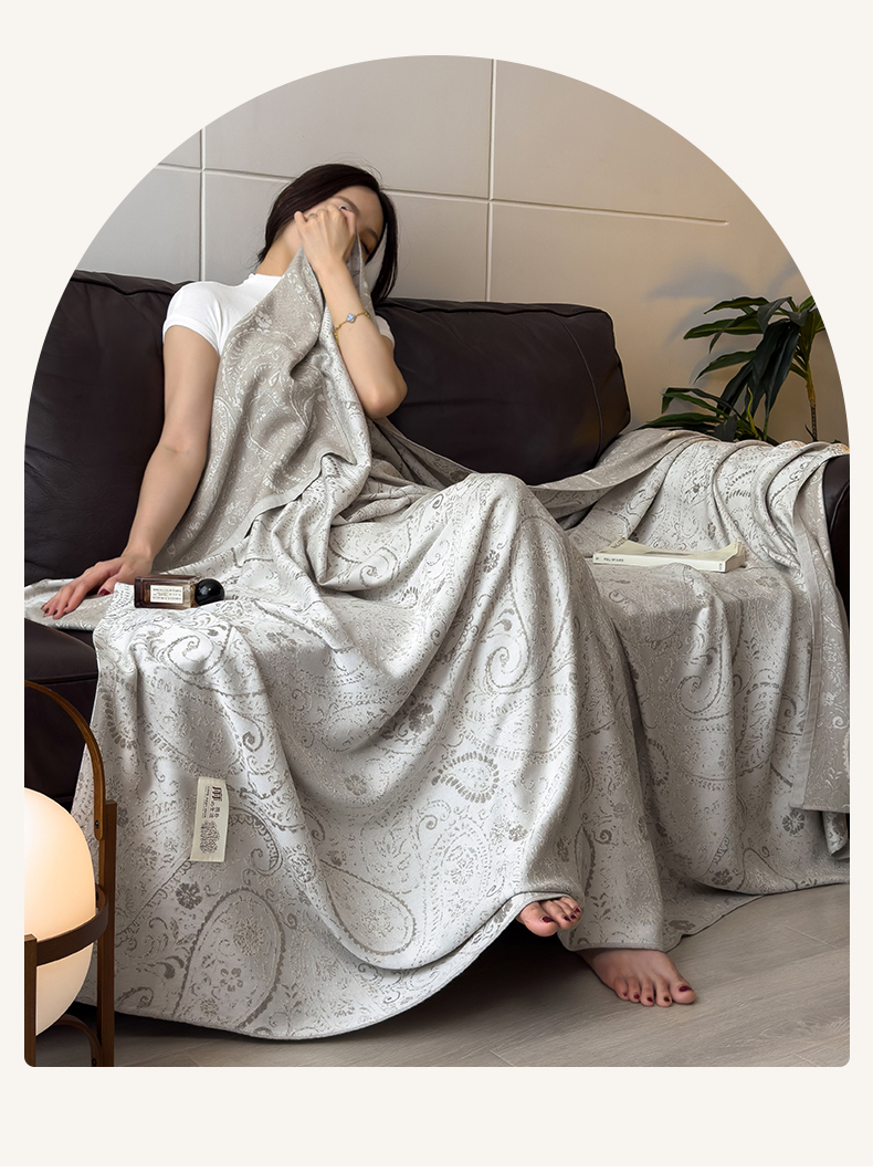 米菲 2025新款A类亚麻提花多功能盖毯毯子毛毯 迷雾花园
