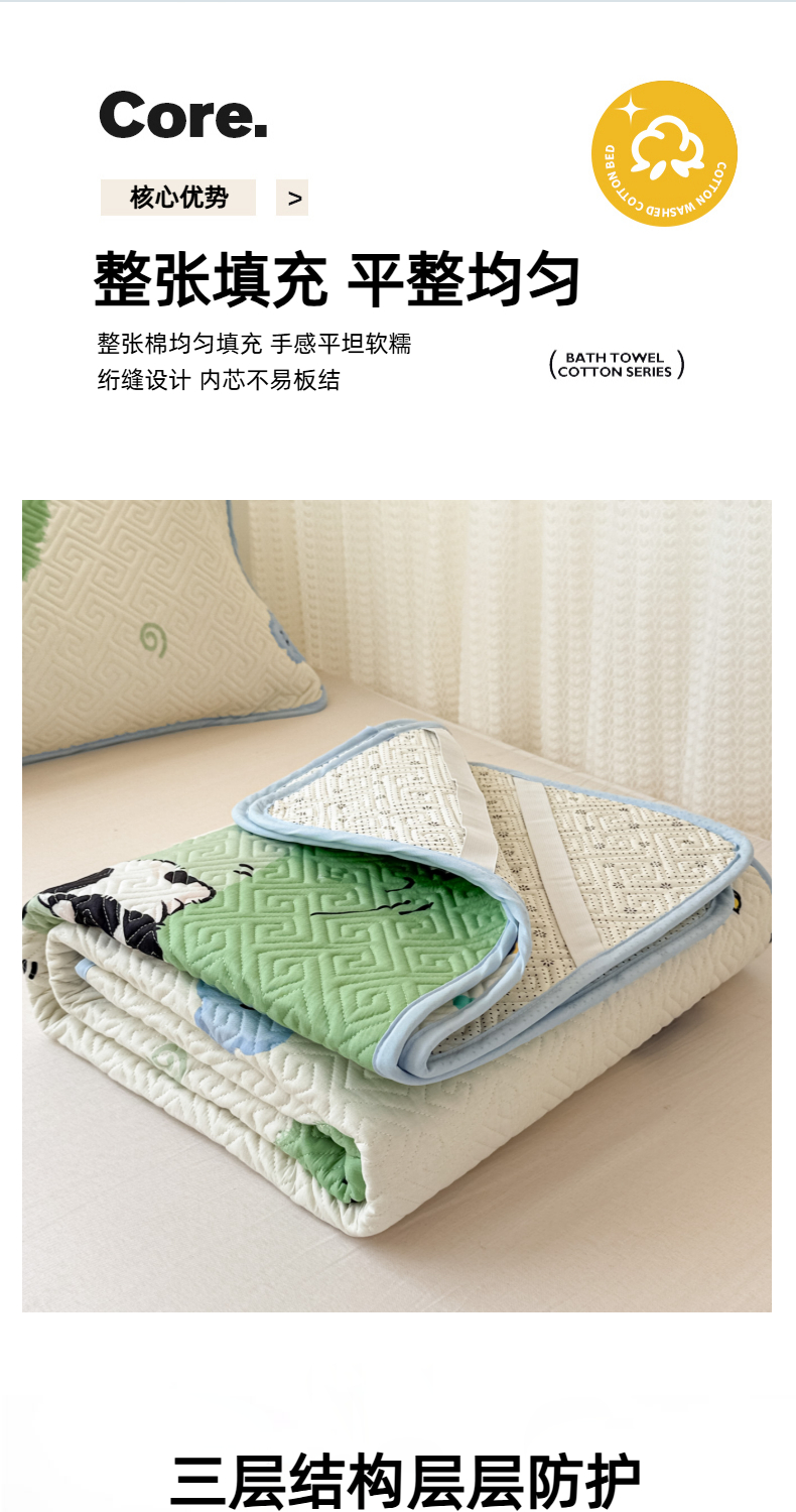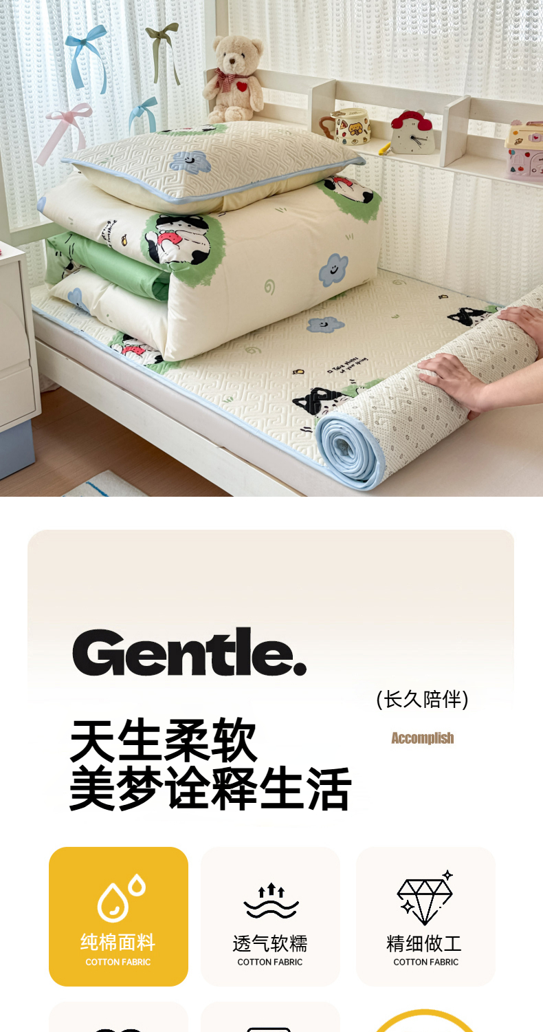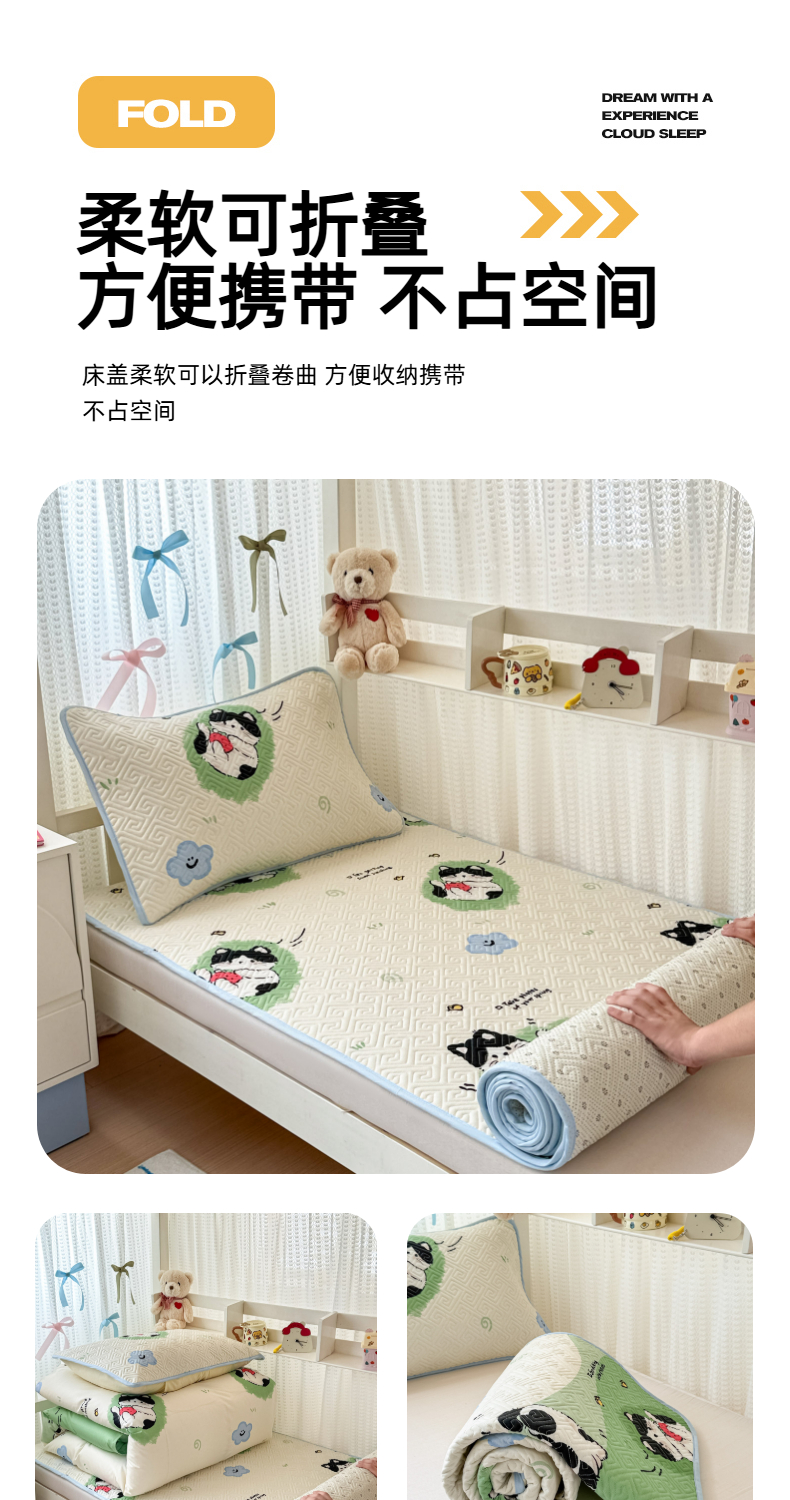 简宜家居(朝初家纺) 2025新款纯棉夹棉床盖学生三件套 草莓喵 -平铺床盖