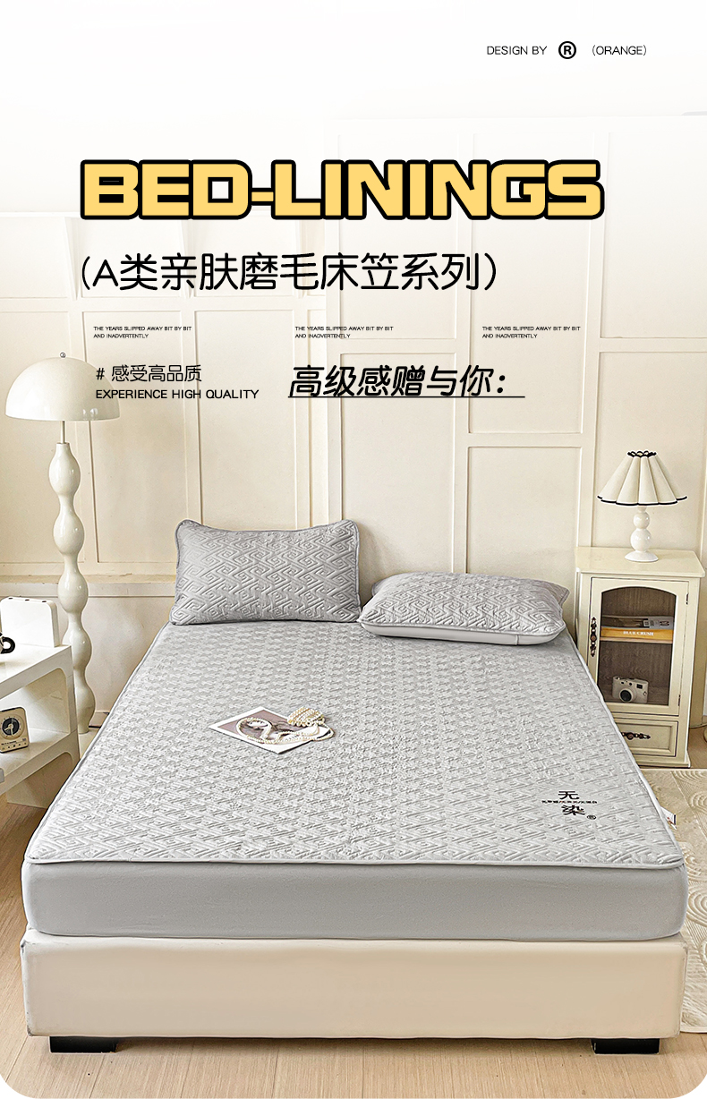 娜娜 2025新款无染A类亲肤磨毛床笠 无染-湖蓝