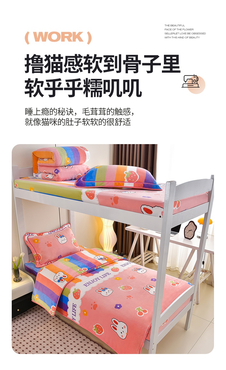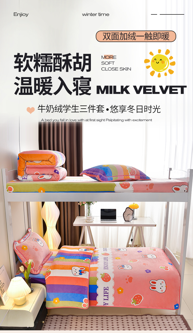 (总)缘莉娜家纺 2025新款牛奶绒印花学生宿舍三件套上下铺三件套,人生格言,致青春,抱抱熊,玫瑰的故事,海阔天空,兔兔乐园,家和万事兴,翩翩起舞,鹿上时空,甜蜜蜜,一路相伴,如花似锦