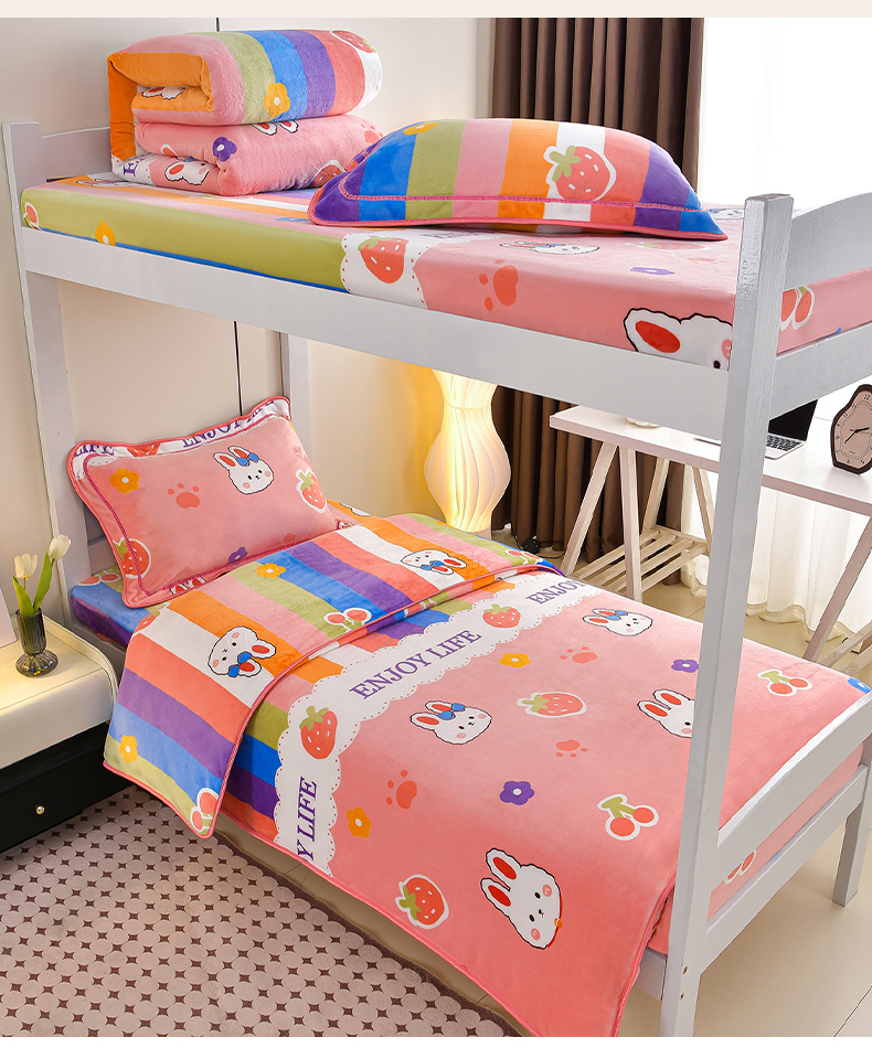 缘莉娜家纺 2025新款牛奶绒印花学生宿舍三件套上下铺三件套 兔兔乐园