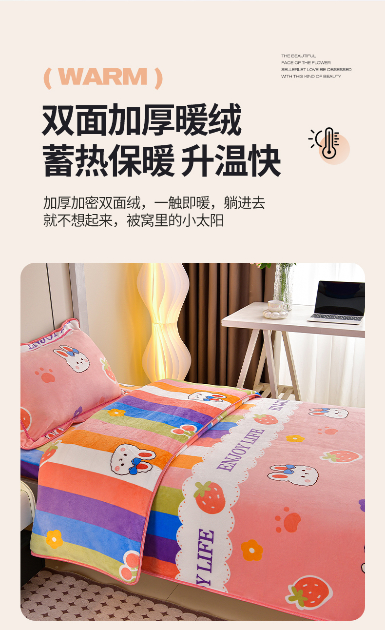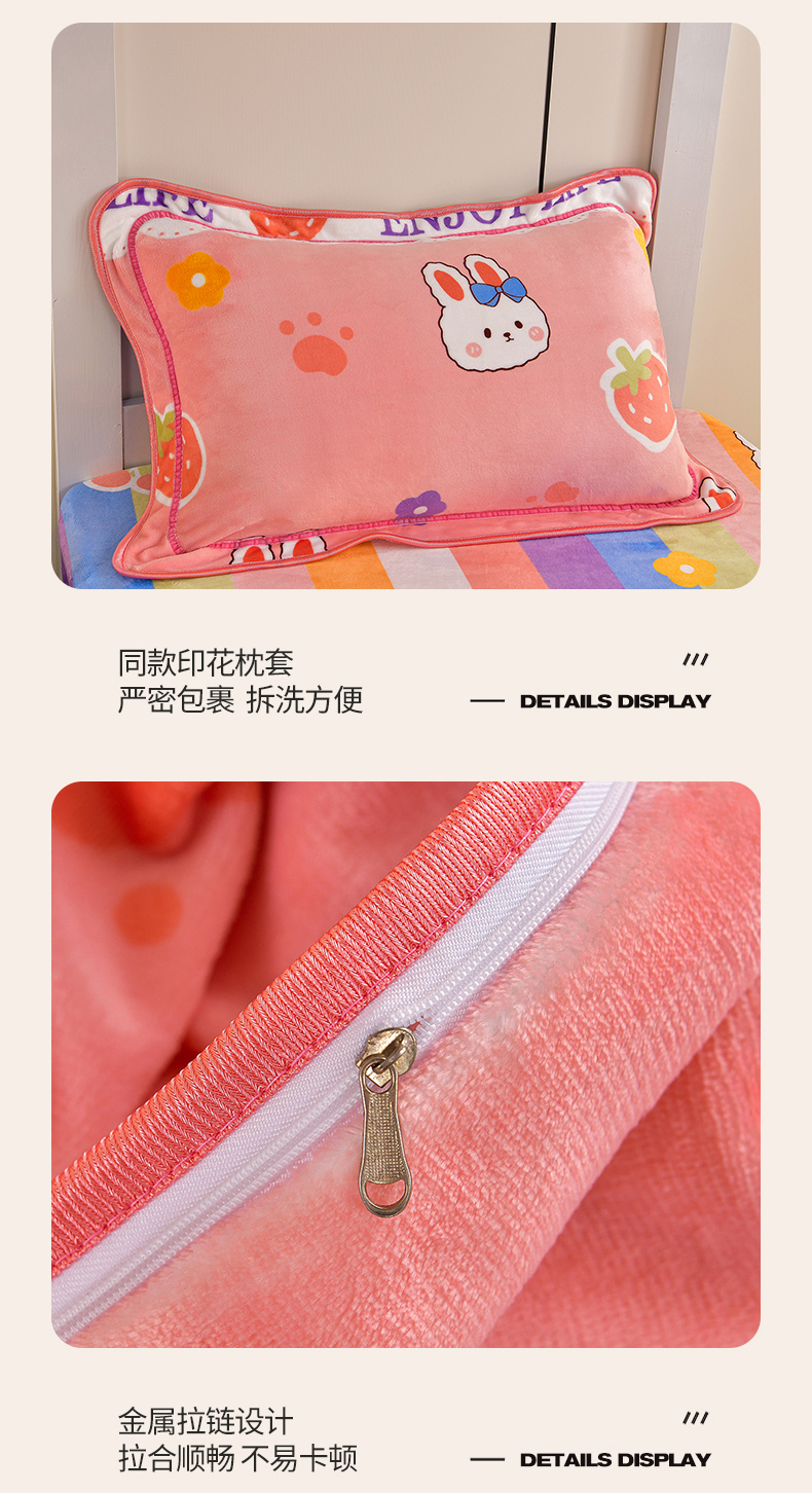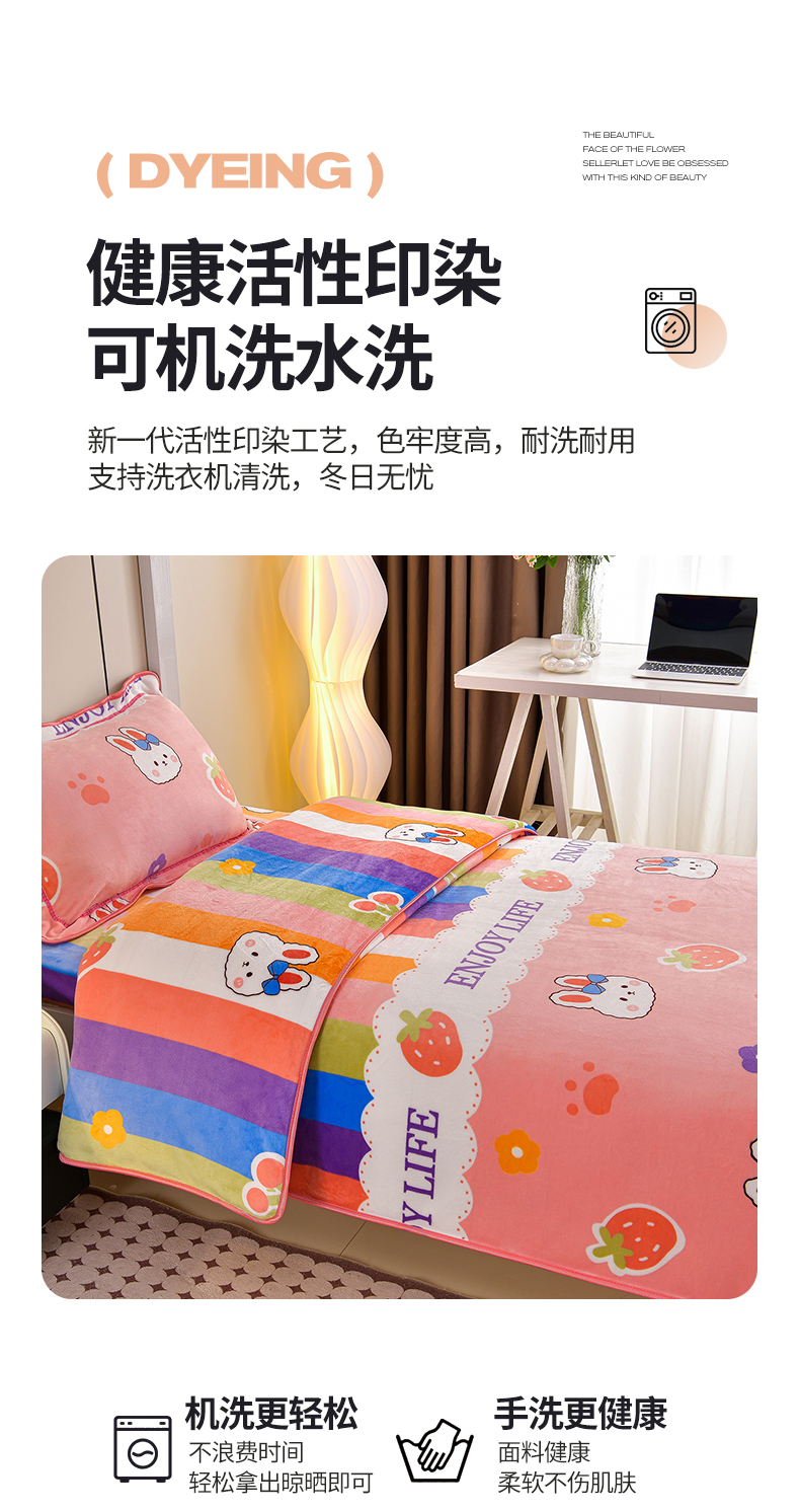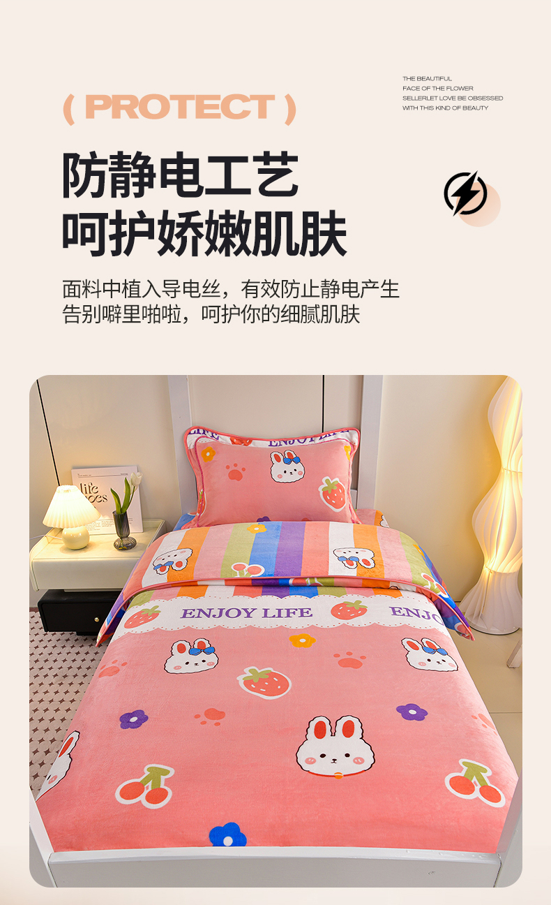 商品名称:缘莉娜家纺 2025新款牛奶绒印花学生宿舍三件套上下铺三件套 兔兔乐园