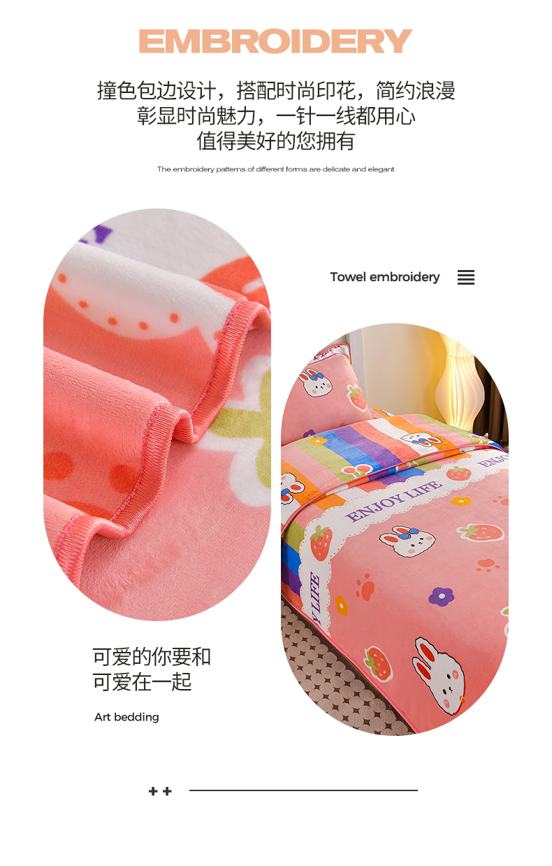 缘莉娜家纺 2025高克重8斤牛奶绒四件套金貂绒法莱绒加厚保暖直播电商爆款 兔兔乐园,兔兔乐园