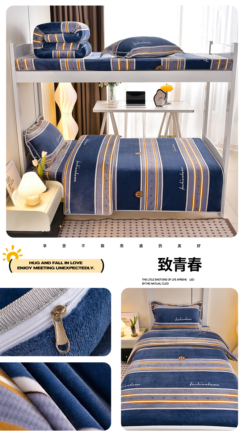 缘莉娜家纺 2025新款牛奶绒印花学生宿舍三件套上下铺三件套 人生格言,人生格言