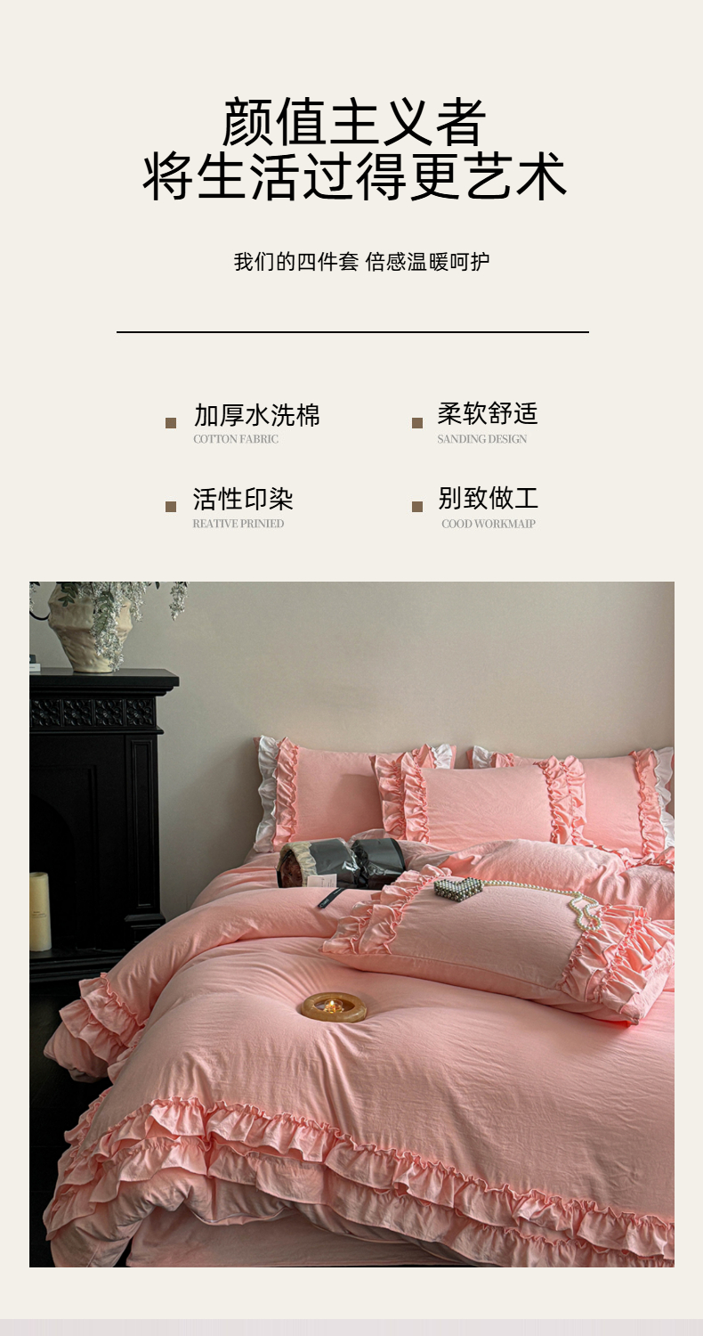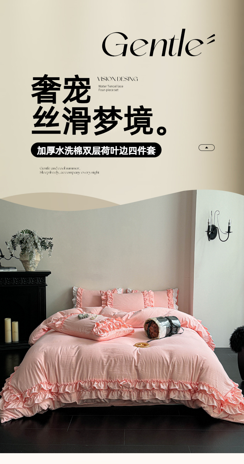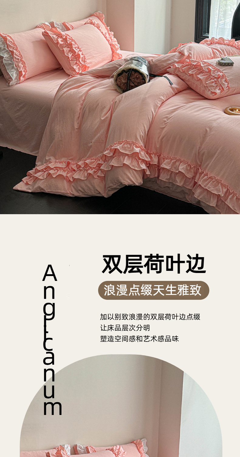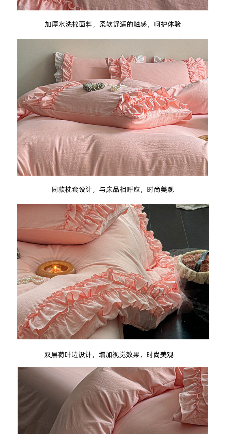 当前位置: 91家纺网 > 商品网购 > 床品套件 > 四件套 > 水洗棉四件套 > 缘生活 2025新款加厚水洗棉双层荷叶边四件套 双层荷叶边粉色