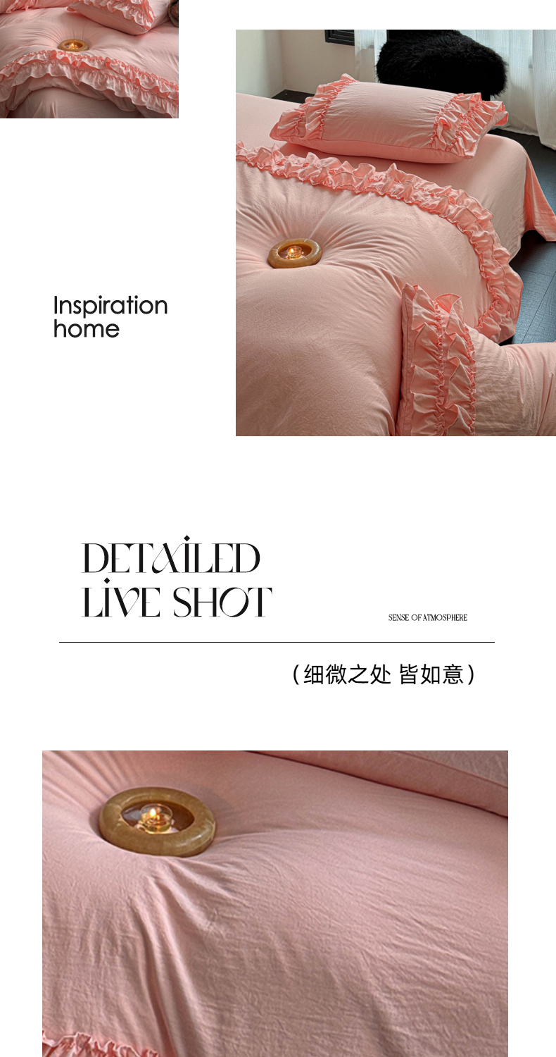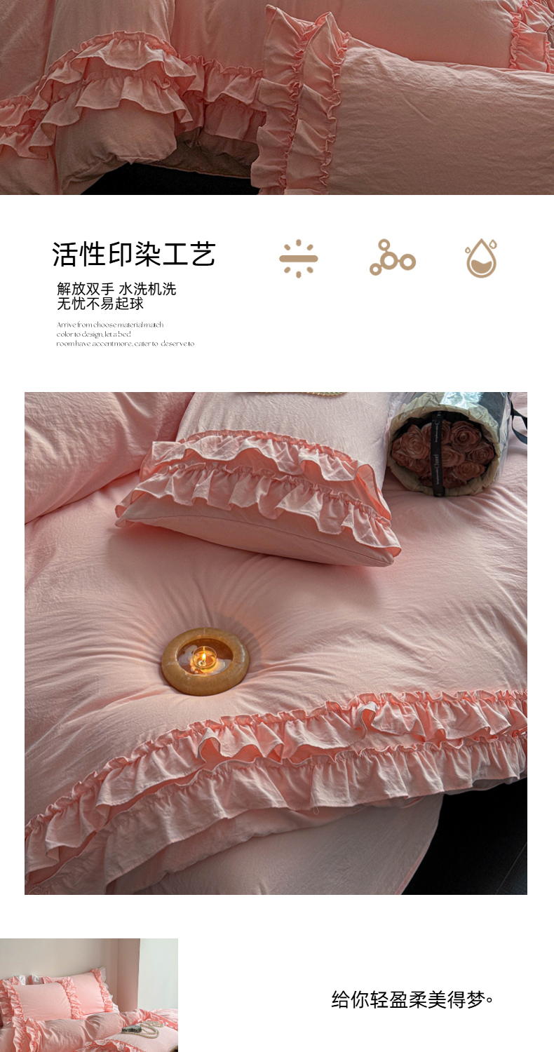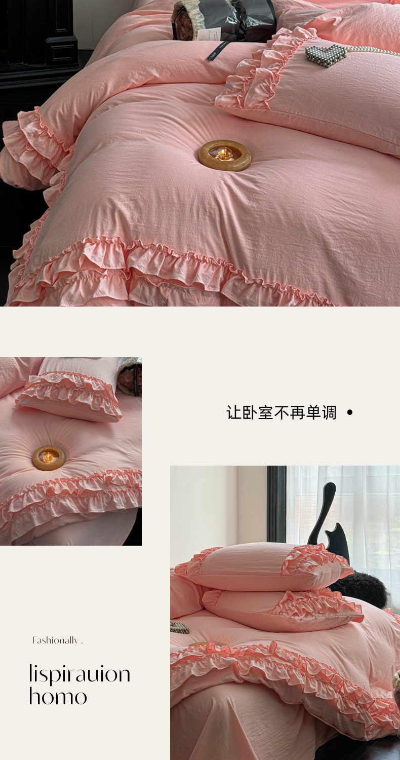 当前位置: 91家纺网 > 商品网购 > 床品套件 > 四件套 > 水洗棉四件套 > 缘生活 2025新款加厚水洗棉双层荷叶边四件套 双层荷叶边粉色