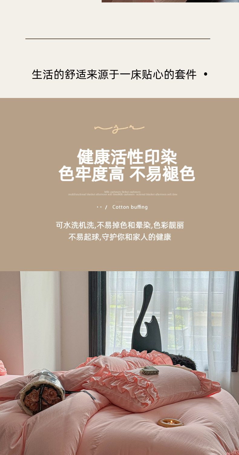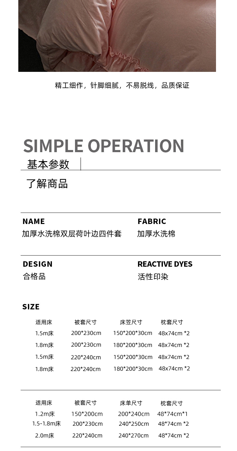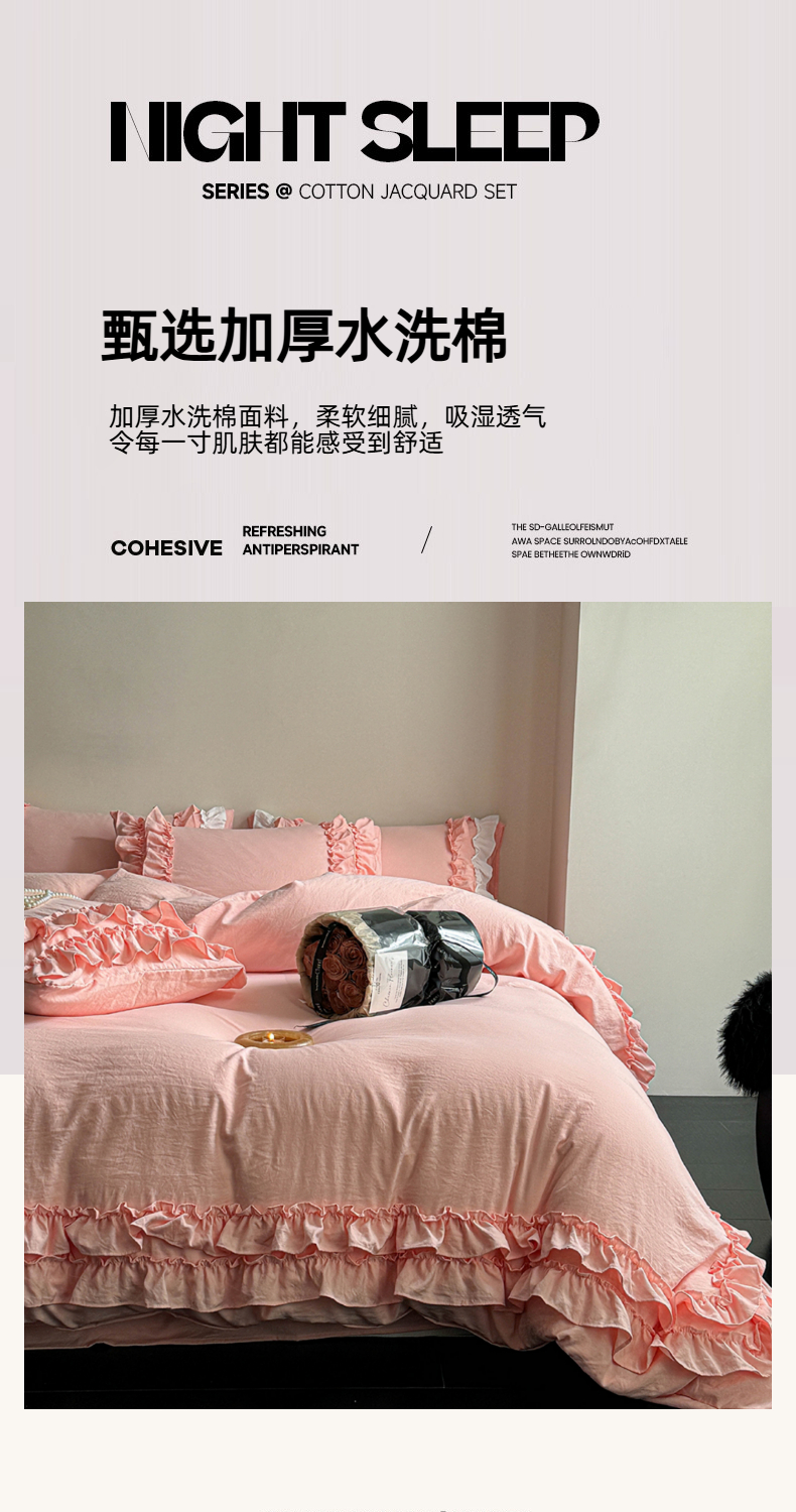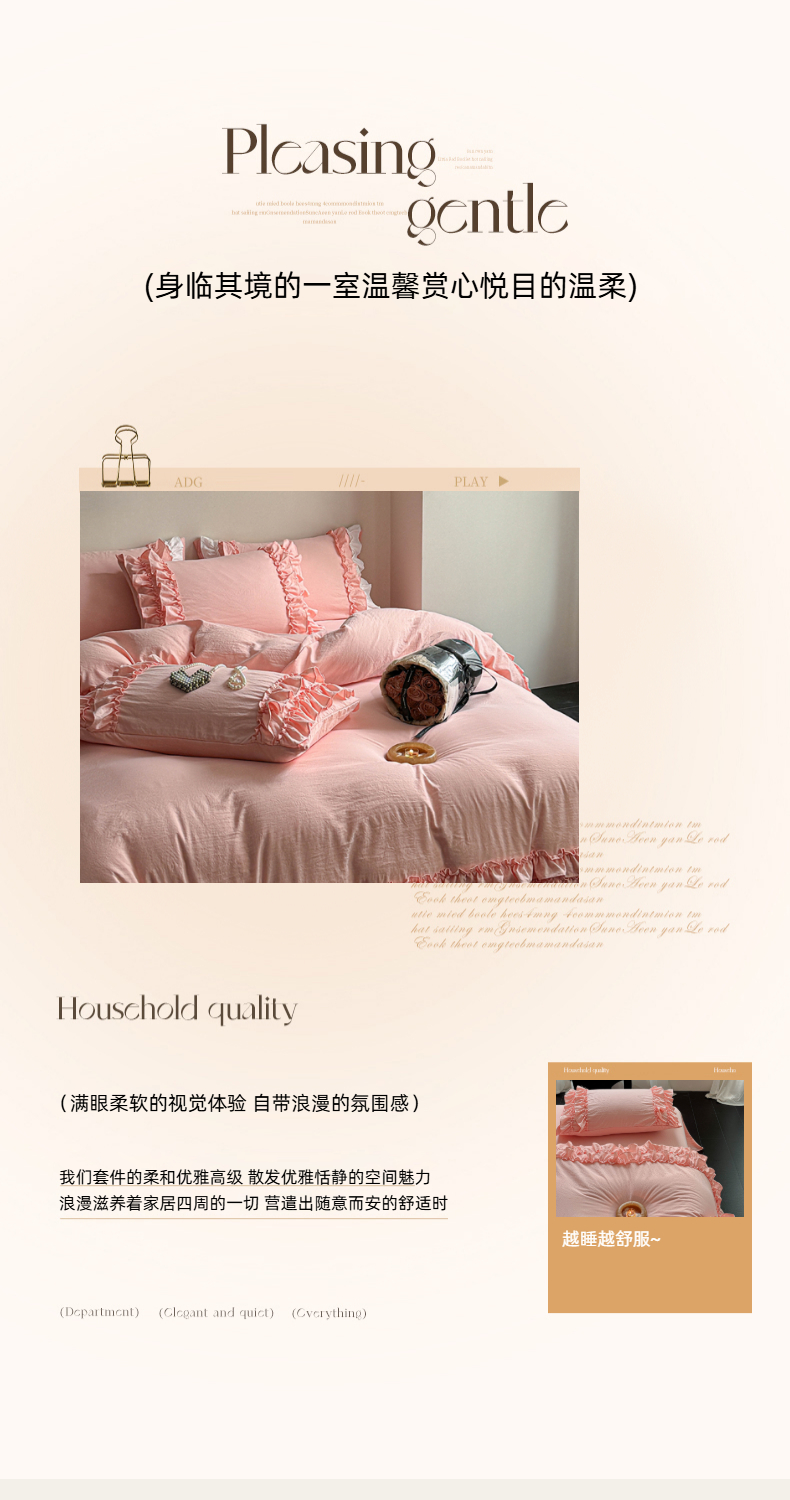 当前位置: 91家纺网 > 商品网购 > 床品套件 > 四件套 > 水洗棉四件套 > 缘生活 2025新款加厚水洗棉双层荷叶边四件套 双层荷叶边粉色