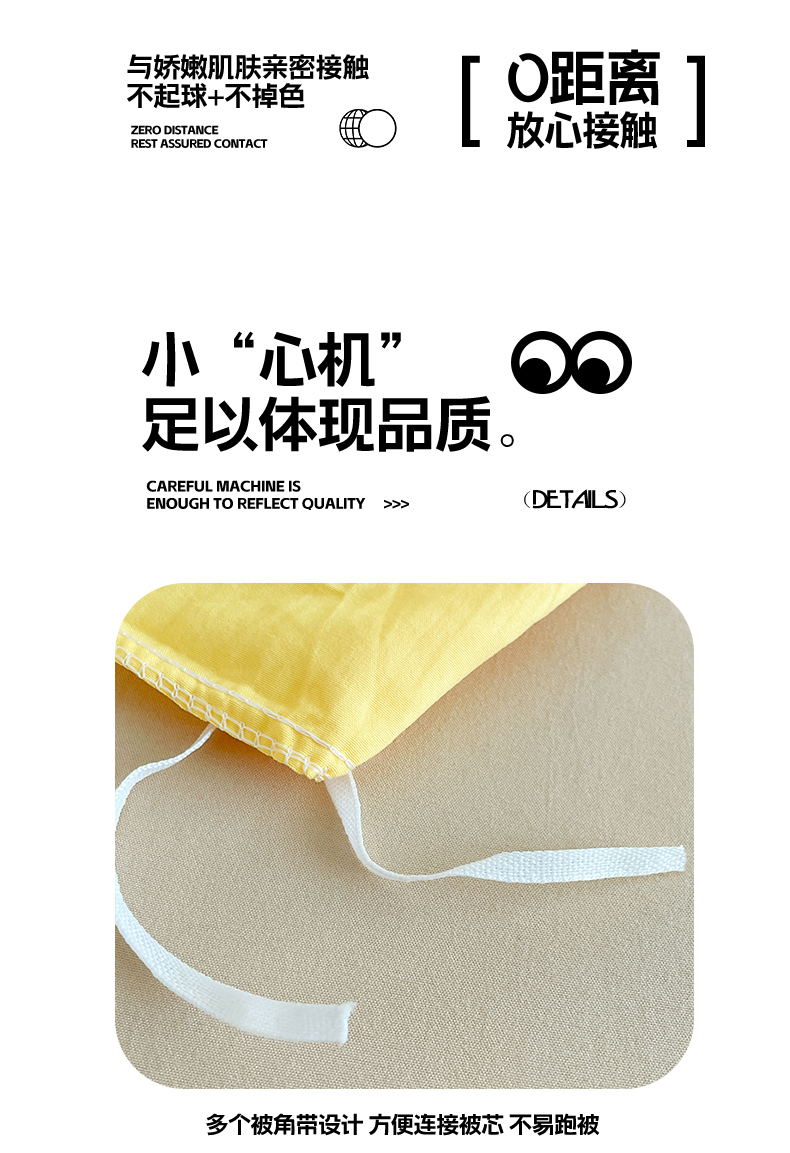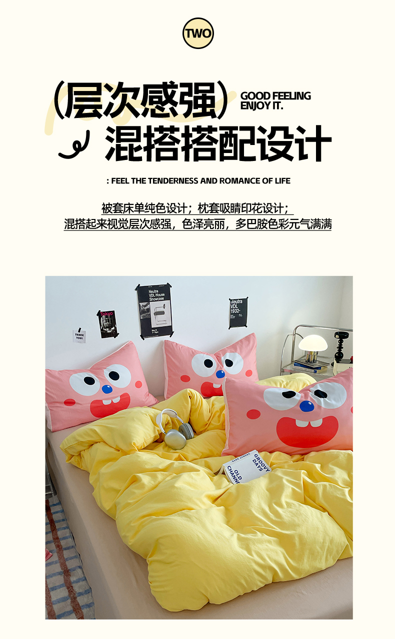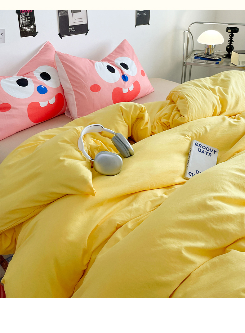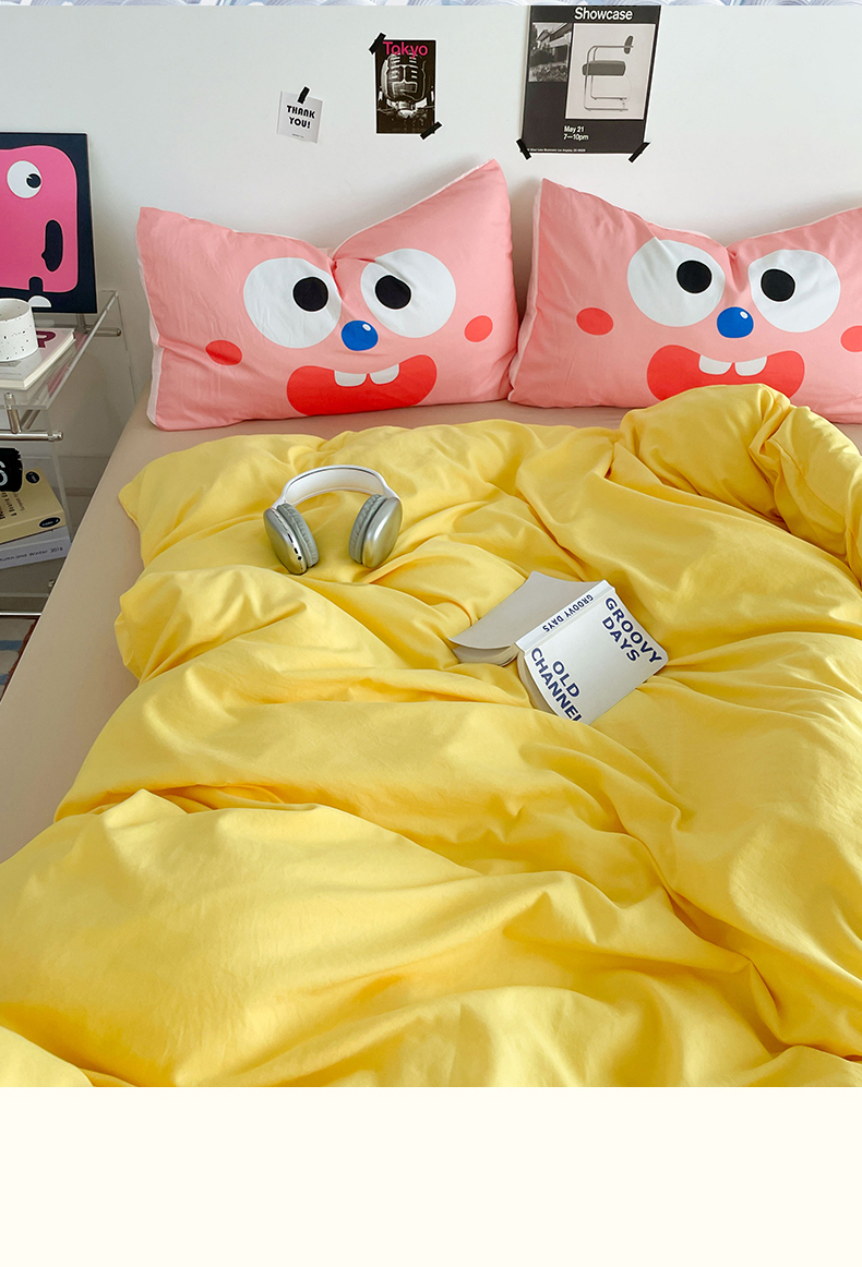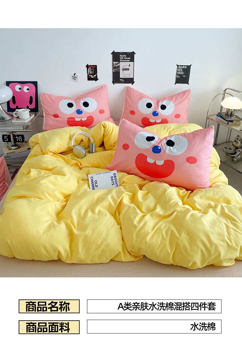 当前位置: 91家纺网 > 商品网购 > 床品套件 > 四件套 > 水洗棉四件套 > 优卡迪家纺馆 2025新款A类亲肤水洗棉大眼萌纯色混搭四件套 大眼萌-鹅黄杏