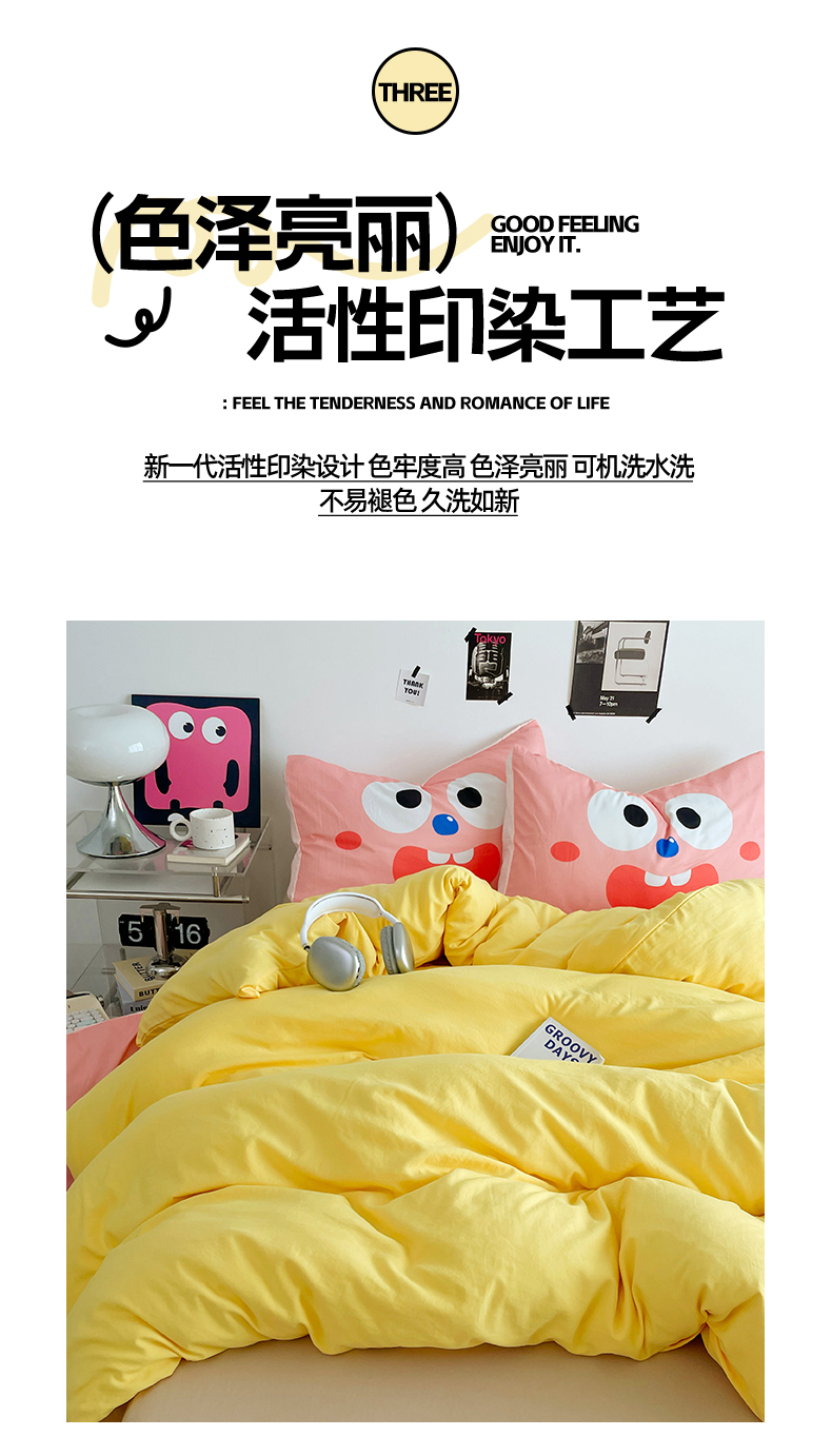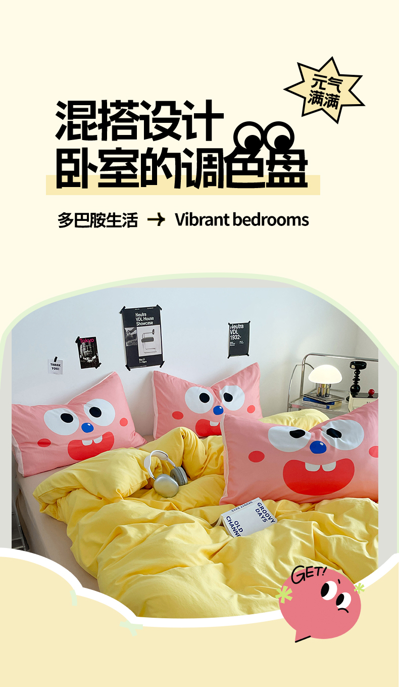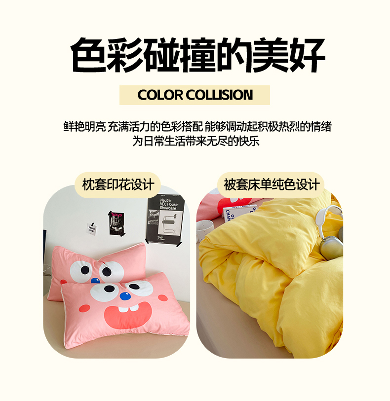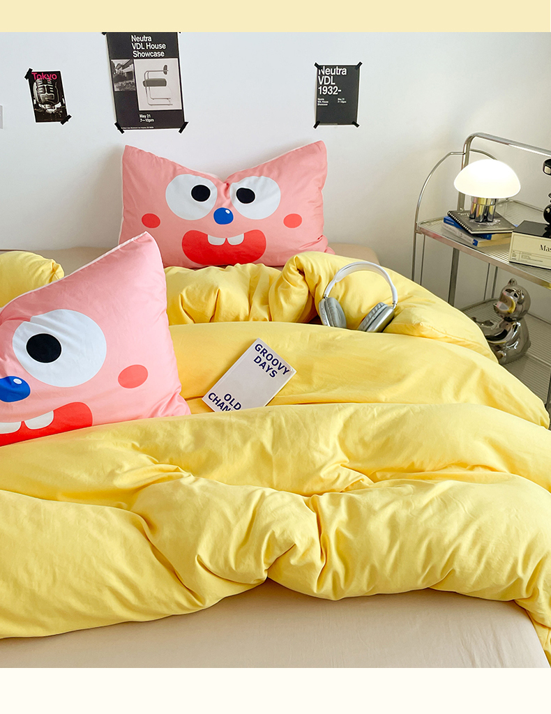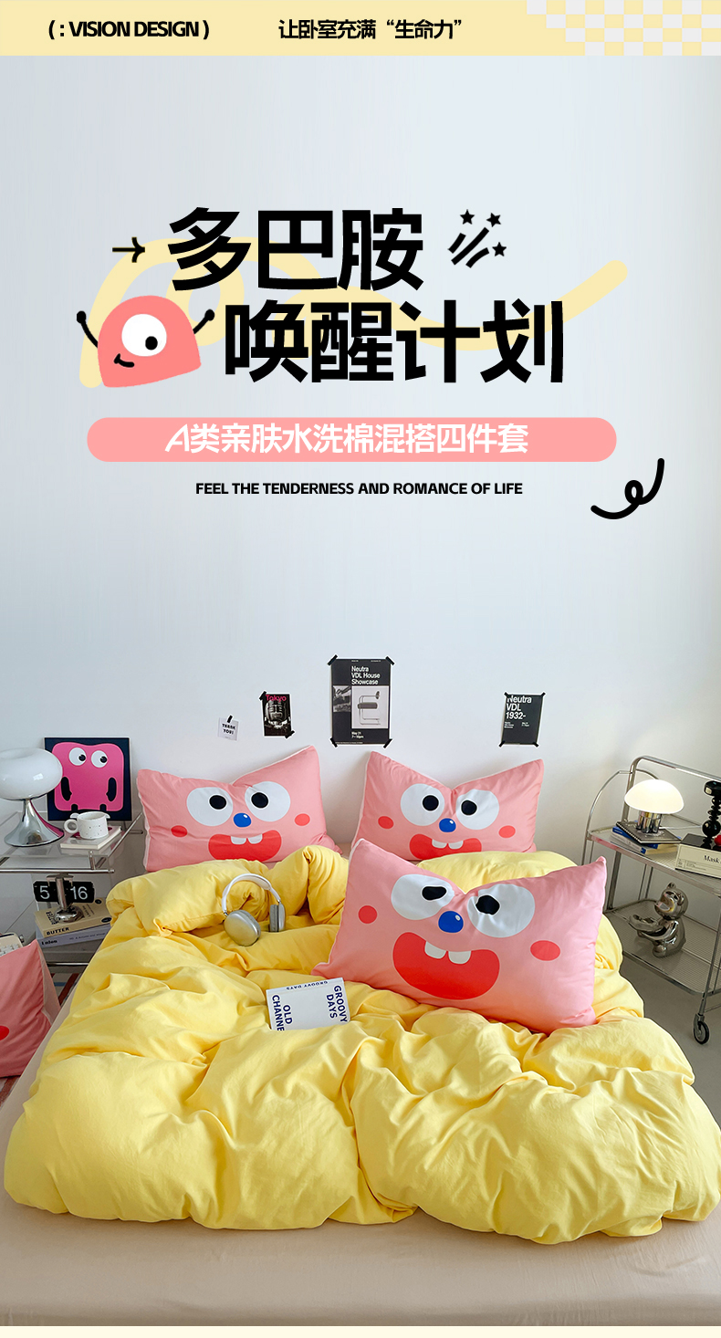 当前位置: 91家纺网 > 商品网购 > 床品套件 > 四件套 > 水洗棉四件套 > 优卡迪家纺馆 2025新款A类亲肤水洗棉大眼萌纯色混搭四件套 大眼萌-鹅黄杏
