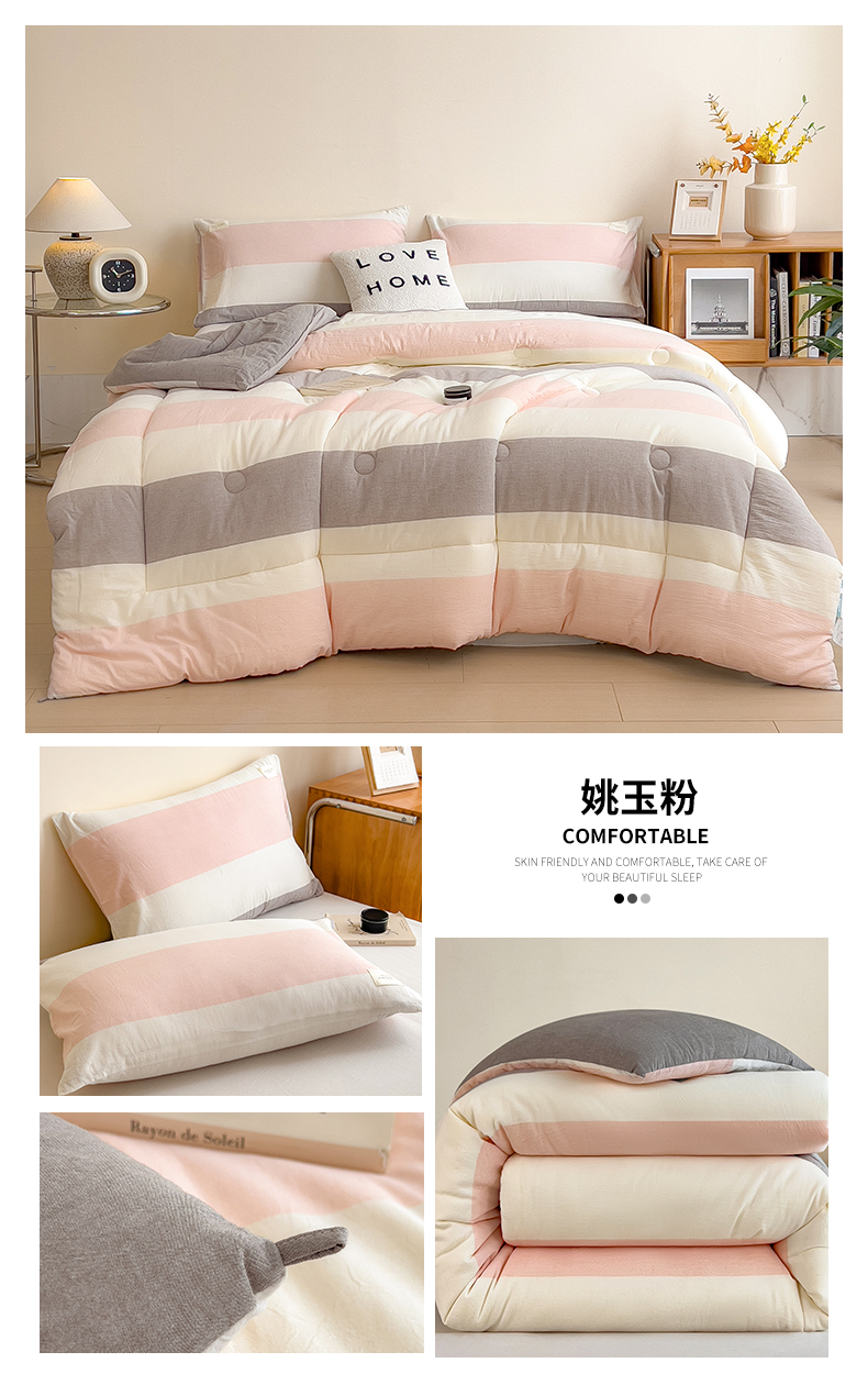• 91家纺网 家纺一手货源 找家纺 宝士康家纺 2025新品10A抗菌无印风学生季春秋被/被芯/跨境/外贸 黄粉中格