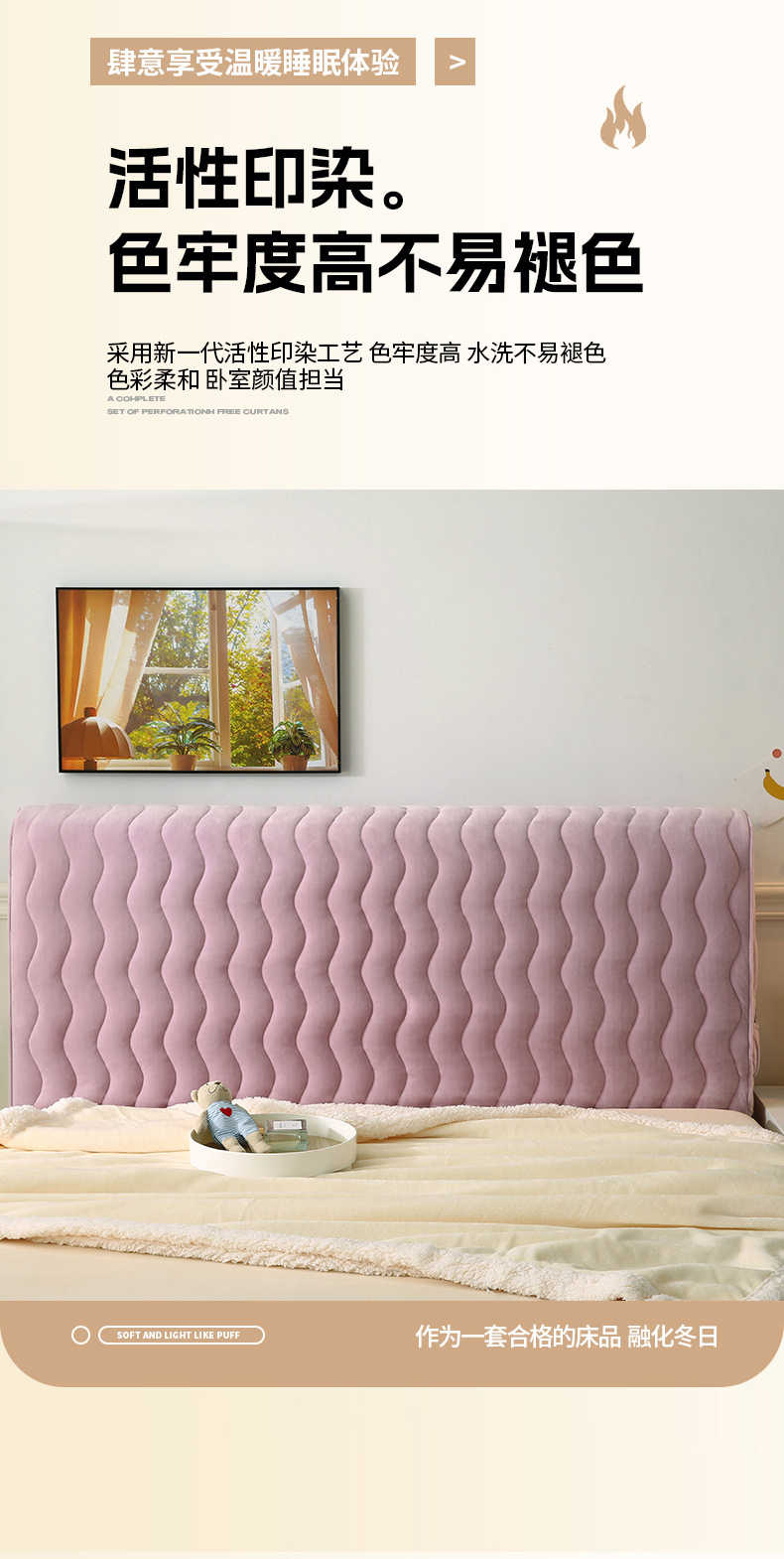 (总)怡源梦 2025新款亲肤舒适荷兰绒曲线床头罩,米白,大红,豆沙,灰蓝,桔色,绿色,浅灰,浅紫,玉粉