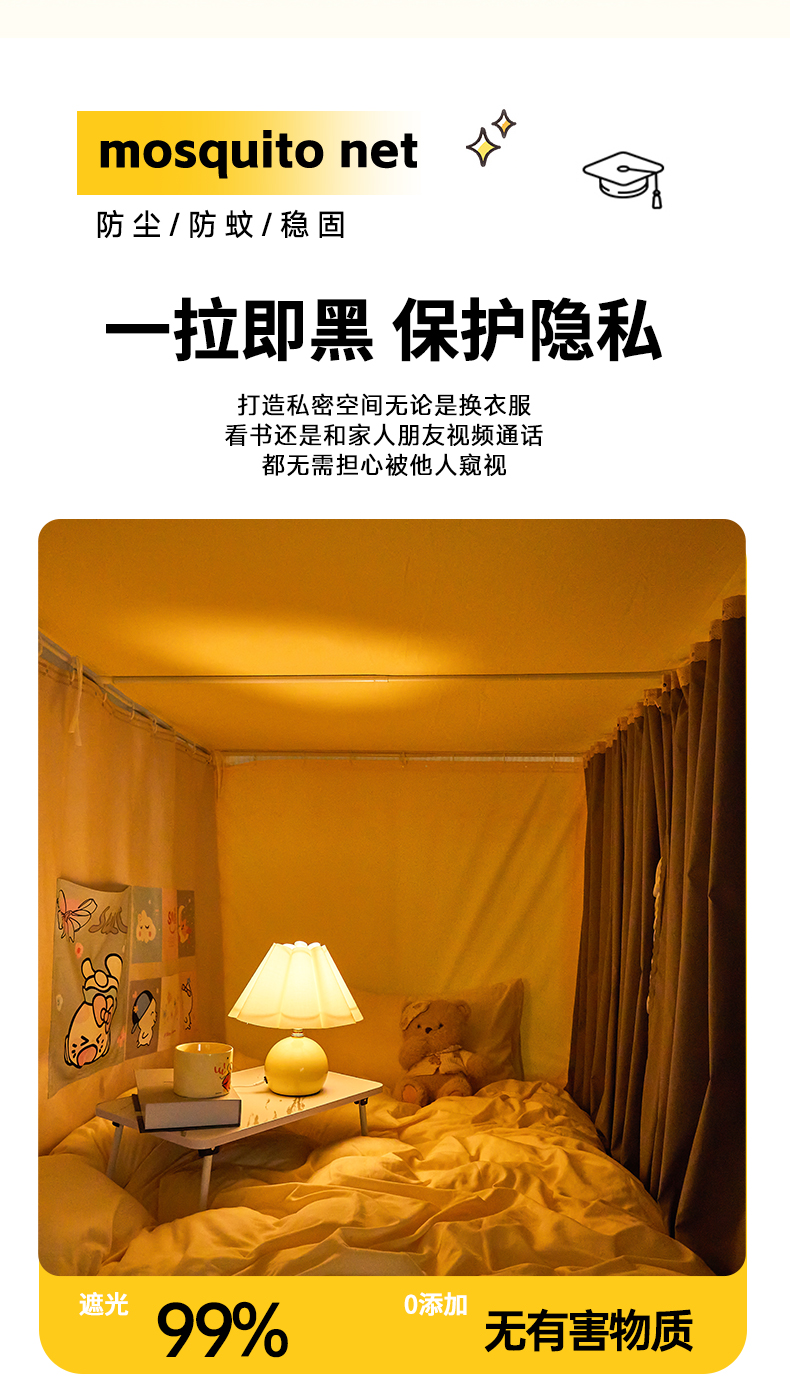 当前位置: 91家纺网 > 商品网购 > 床上用品 > 蚊帐 > 学生蚊帐 > 梦尔佳蚊帐 2025新款学生宿舍遮光床帘蚊帐-花晨月夕 花晨月夕 奶黄