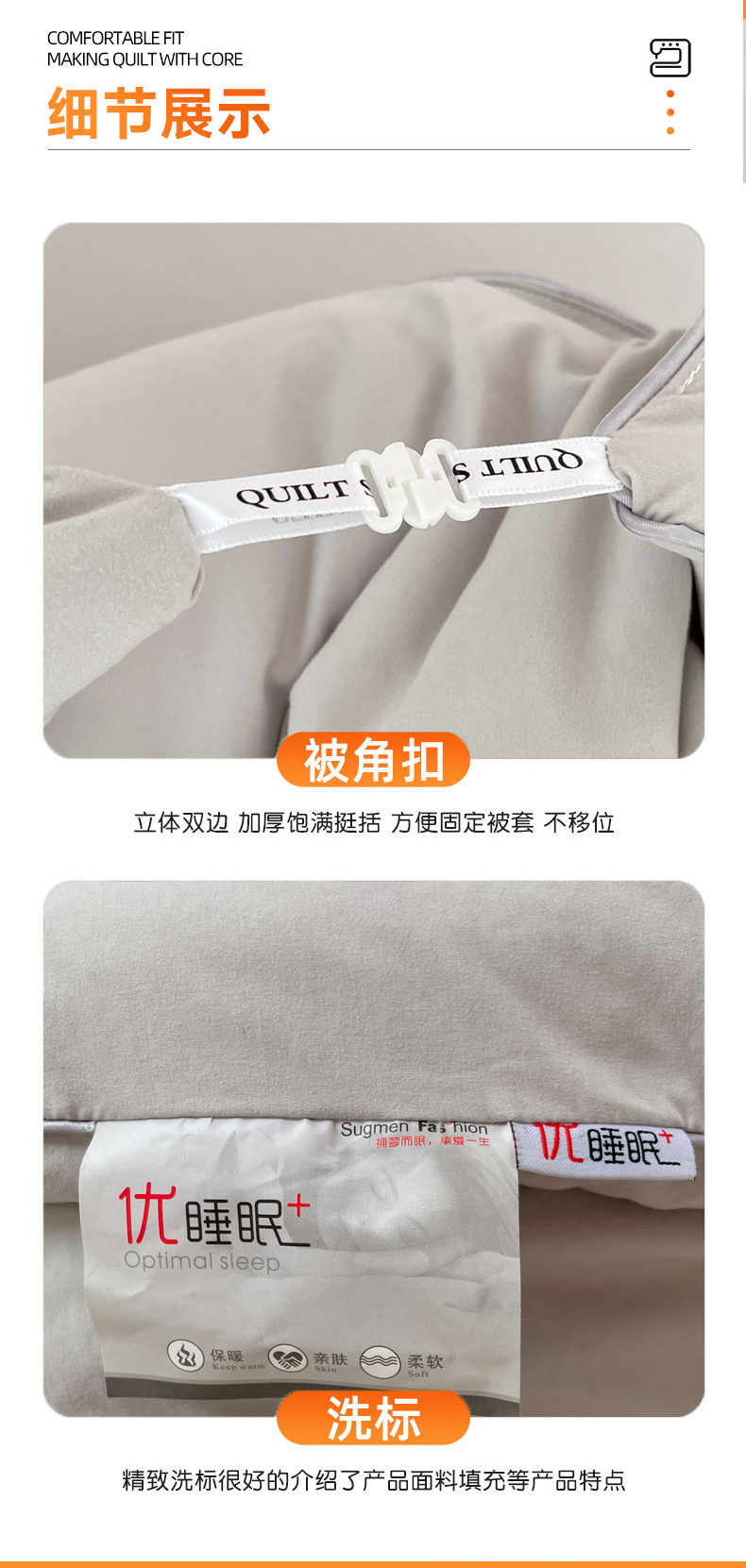 • 91家纺网 家纺一手货源 找家纺 VIP被业 2025新款磨毛二合一扣子款四季子母被学生冬被被子被芯 灰色