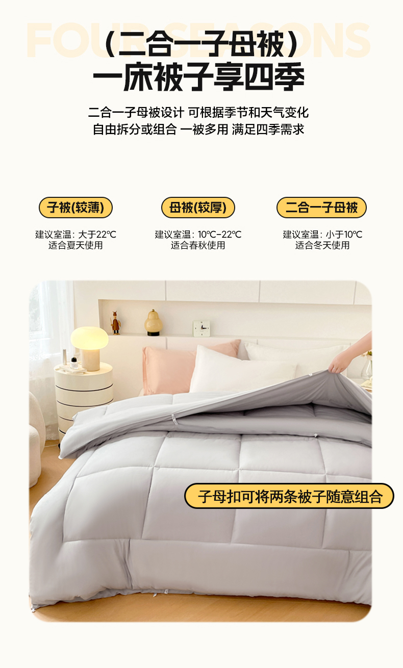 当前位置: 91家纺网 > 商品网购 > 被子 > 子母被 > VIP被业 2025新款磨毛二合一扣子款四季子母被学生冬被被子被芯 灰色