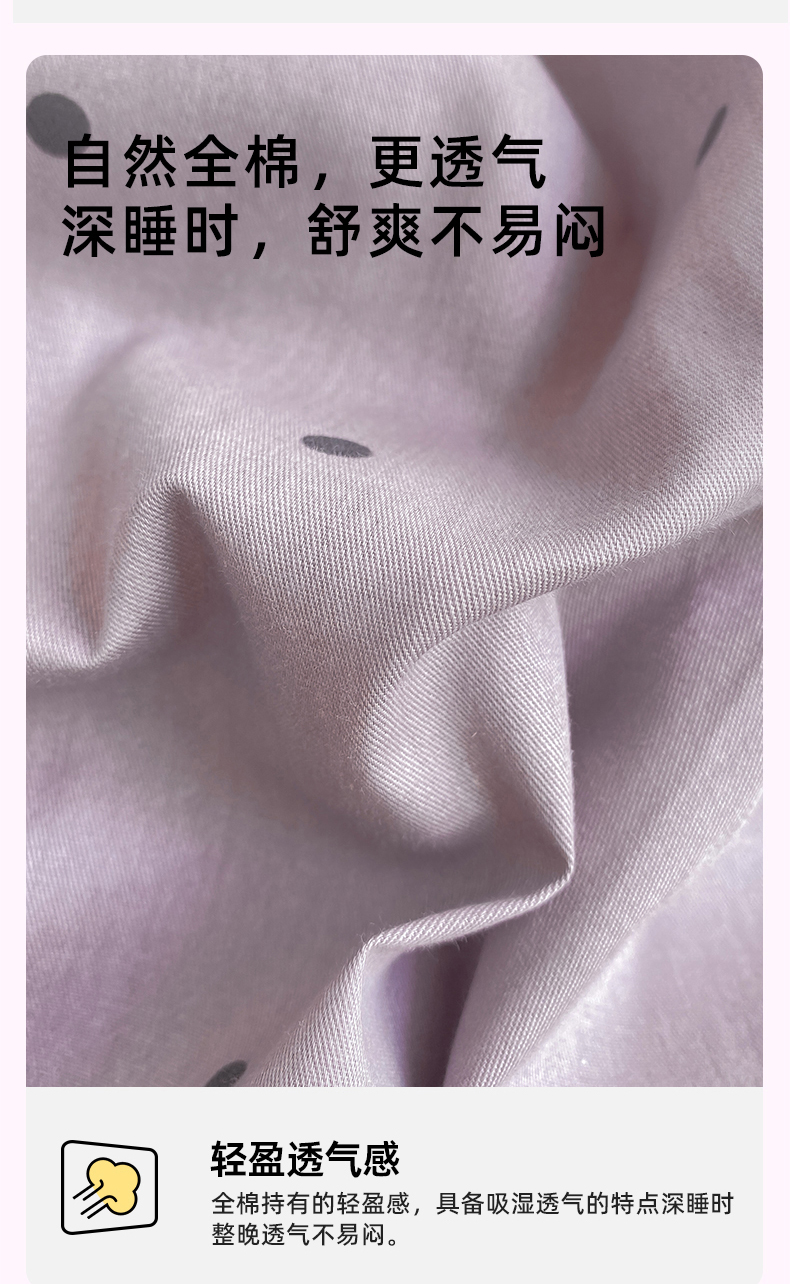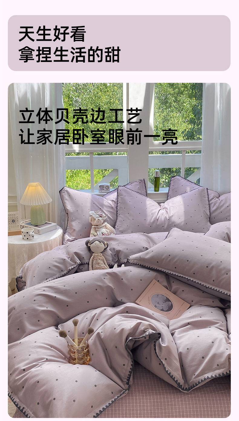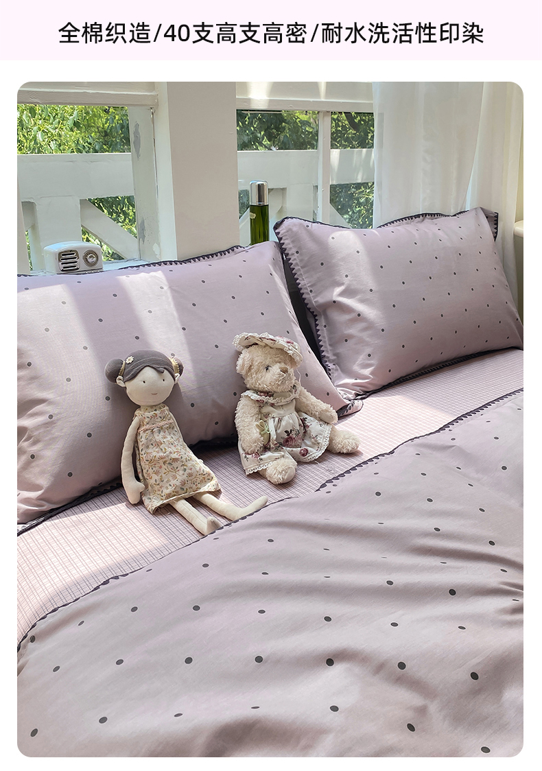 商品名称:浮光家居 2025新款全棉贝壳边系列单被套 小黑点点紫
