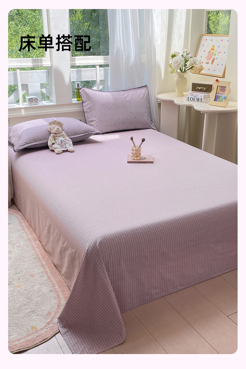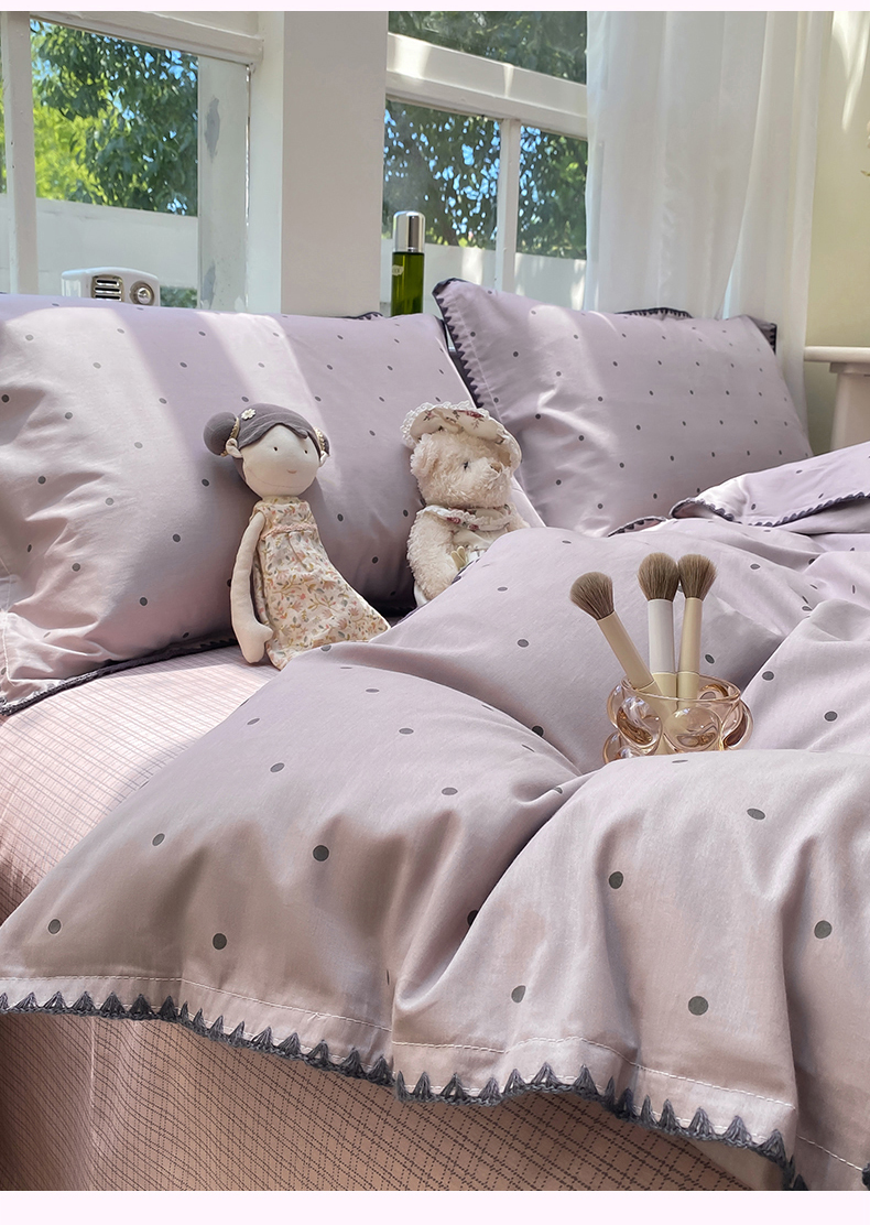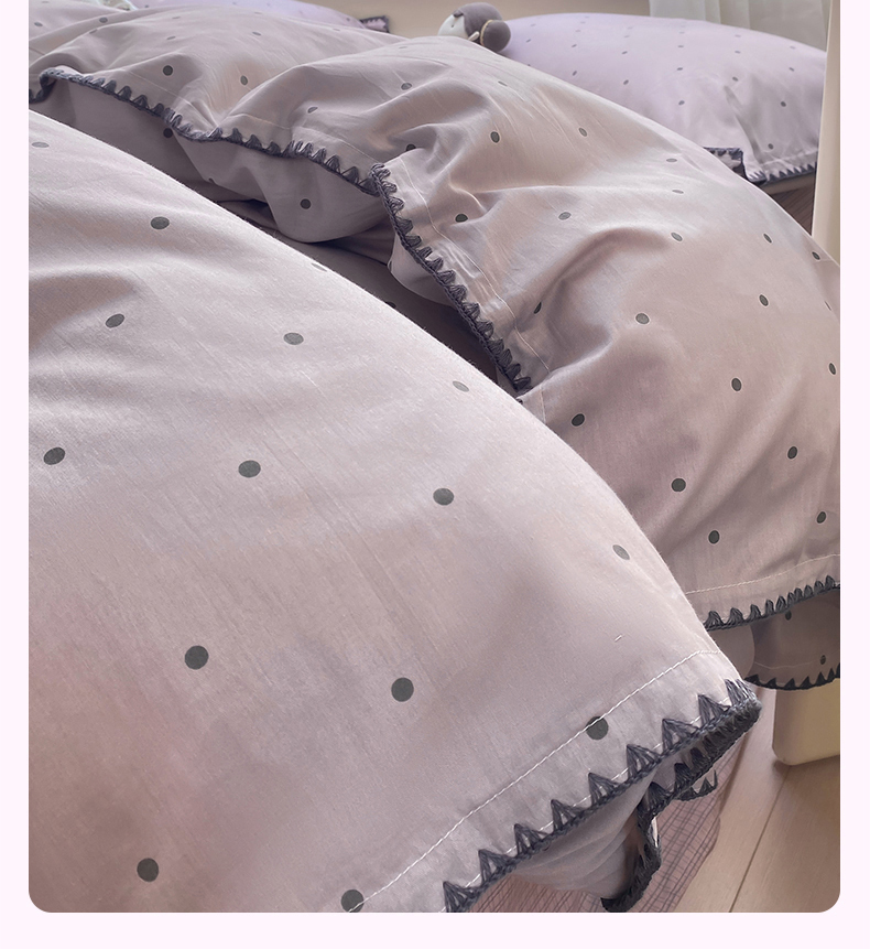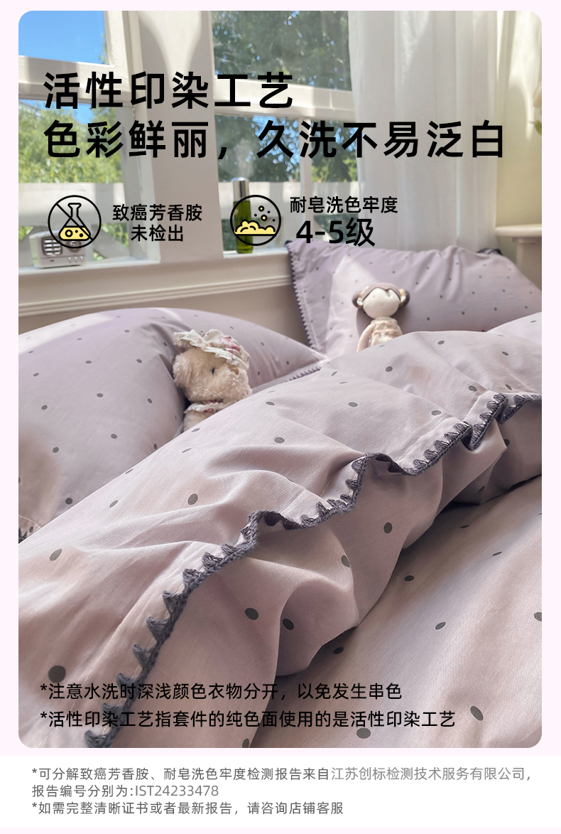 商品名称:浮光家居 2025新款全棉贝壳边系列单被套 小黑点点紫