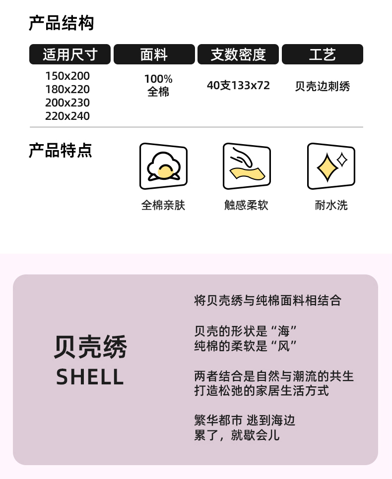 浮光家居 2025新款全棉贝壳边系列单床单 甜卡日常,甜卡日常