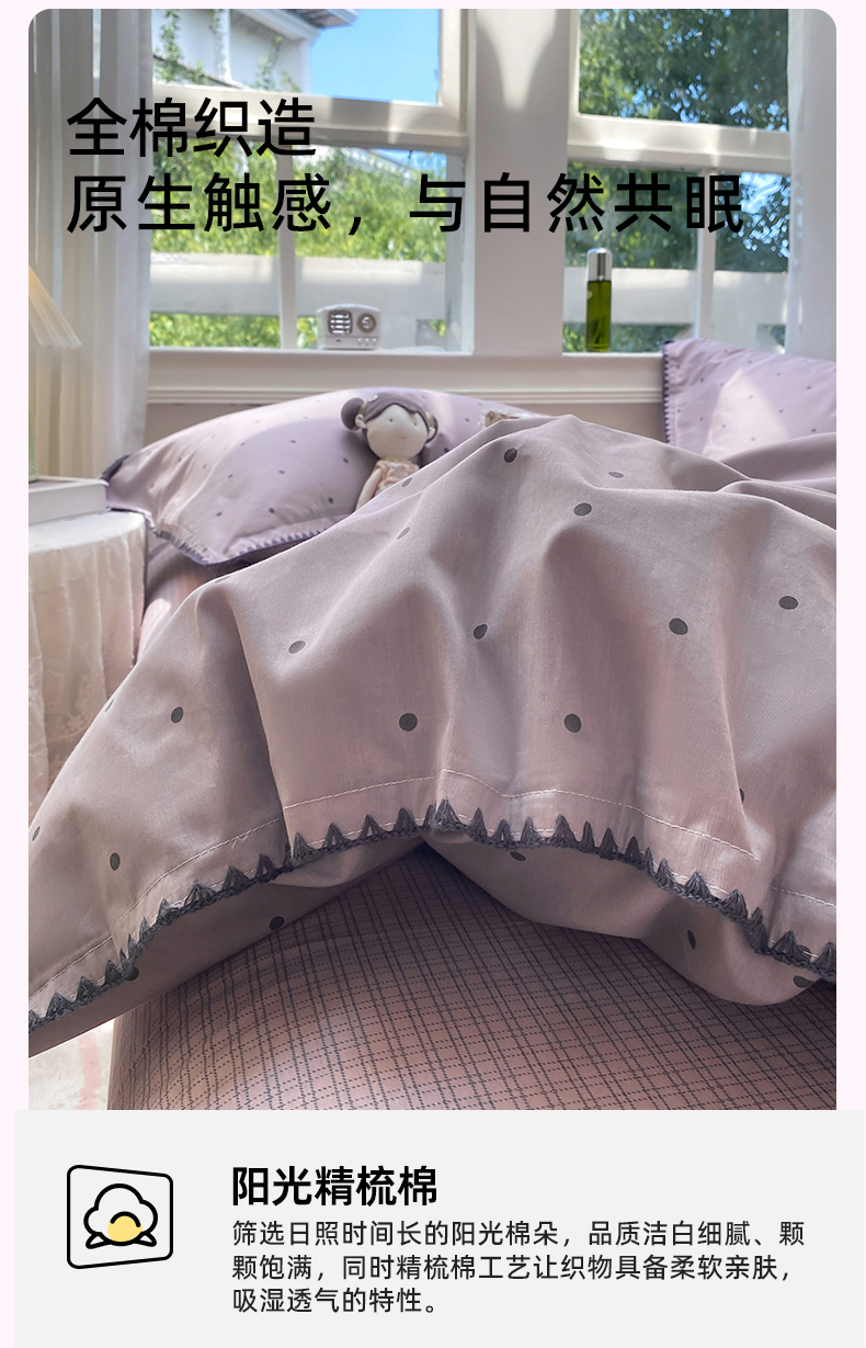 浮光家居 2025新款全棉贝壳边系列单被套 小黑点点紫