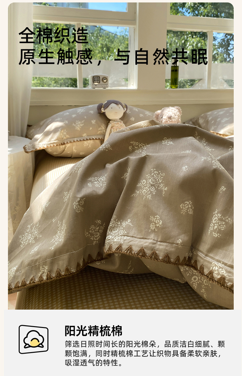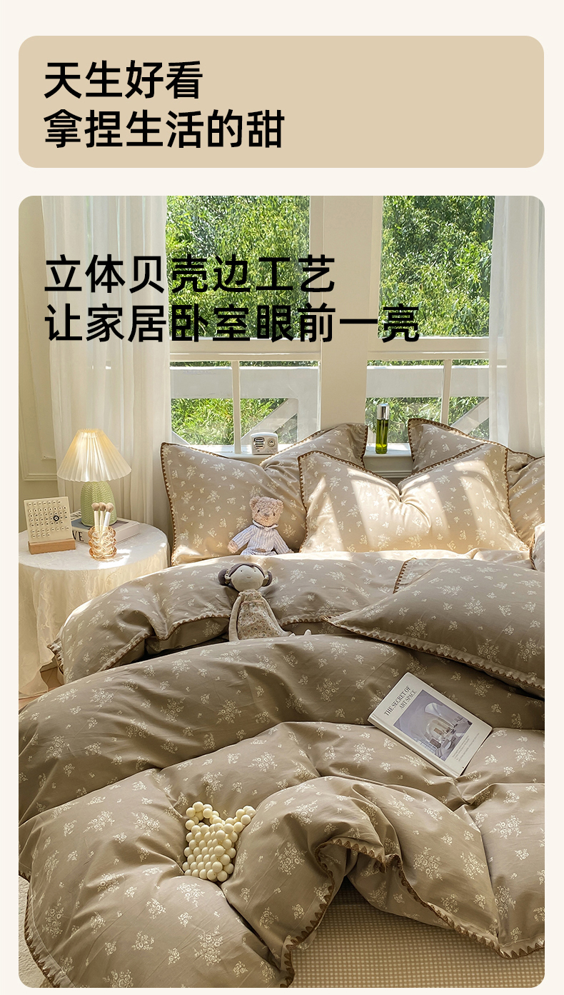 商品名称:浮光家居 2025新款全棉贝壳边系列单被套 花束漫