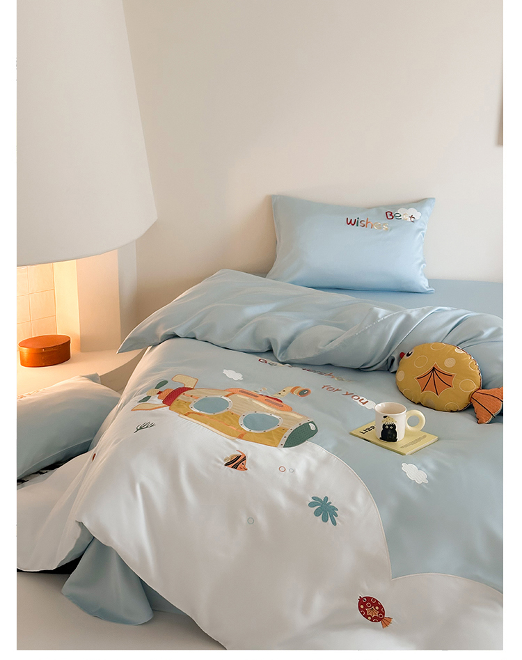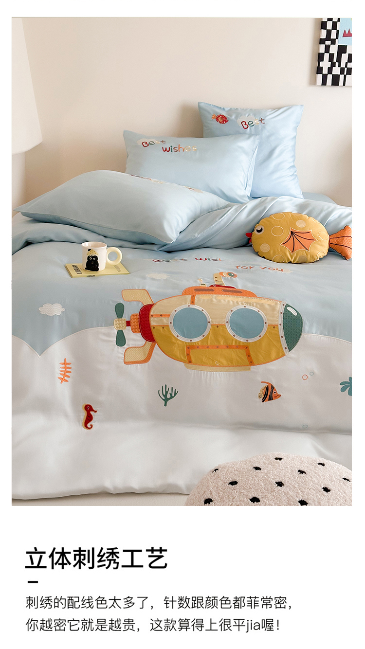 (总)西西家居 2023新款60S奥地利兰精天丝绣花四件套-小帆船,小帆船